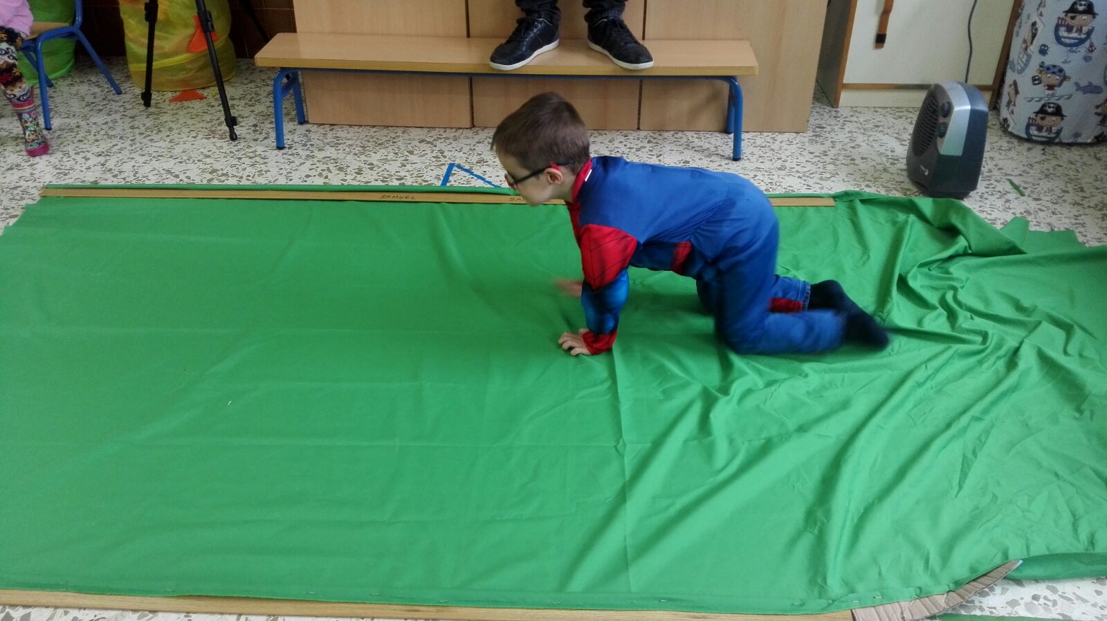 Efectos especiales. Usamos ventilador e hilo de pescar cogiendo la capa de Superman.