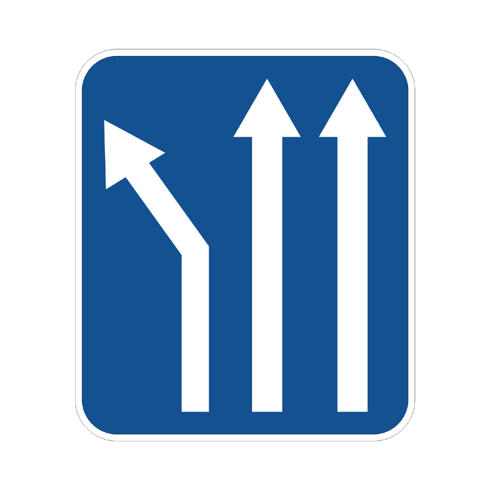 Bifurcación hacia la izquierda en calzada de tres carriles