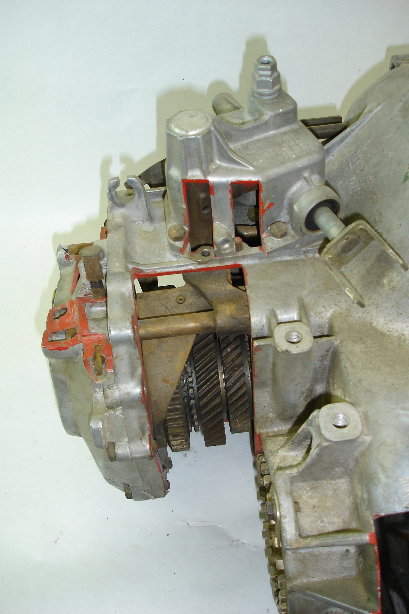 Caja de cambios transversal. Detalle y sección de barra selectora y piñones