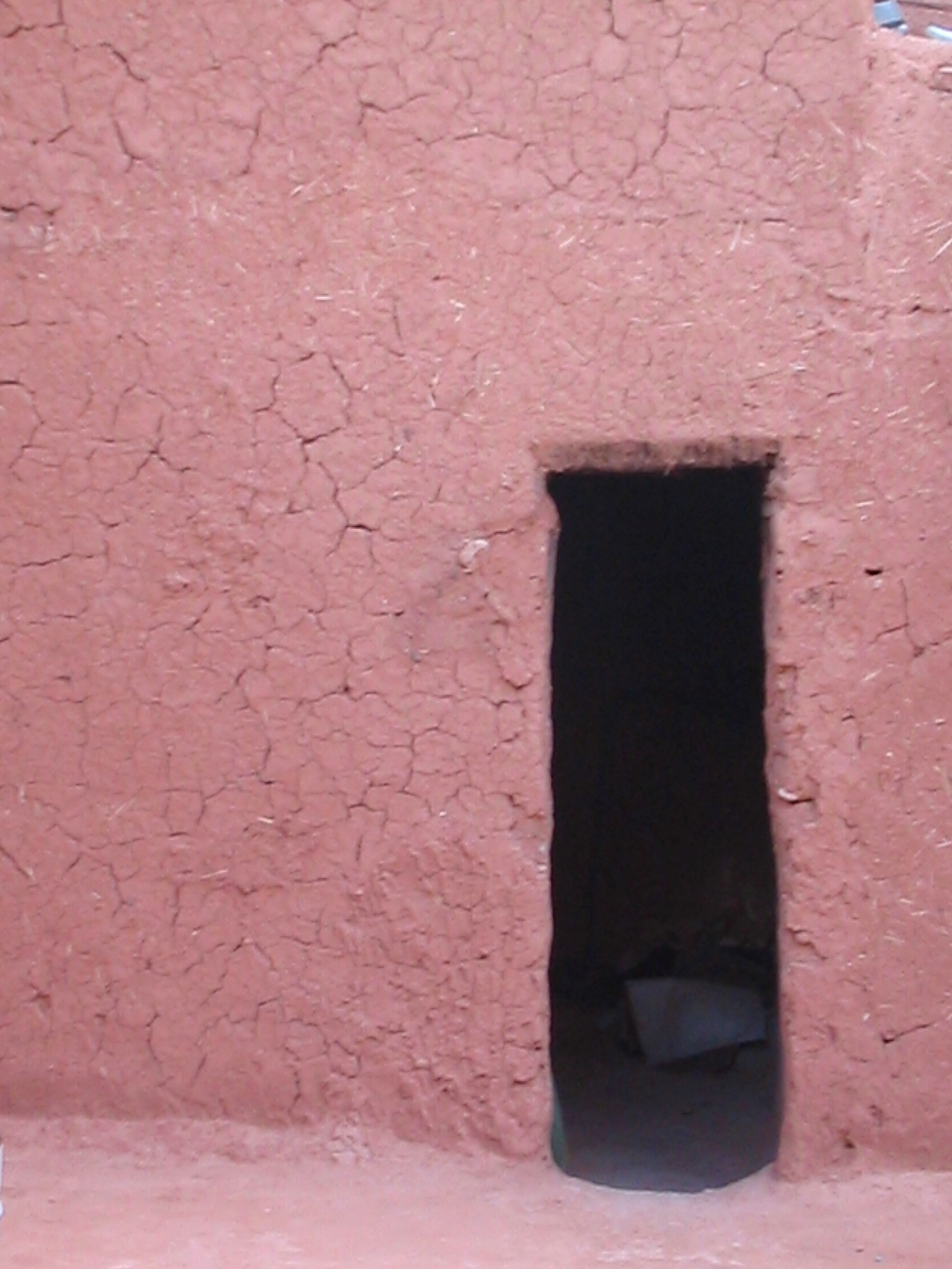Puerta de un refugio de adobe, Achahoud, Marruecos
