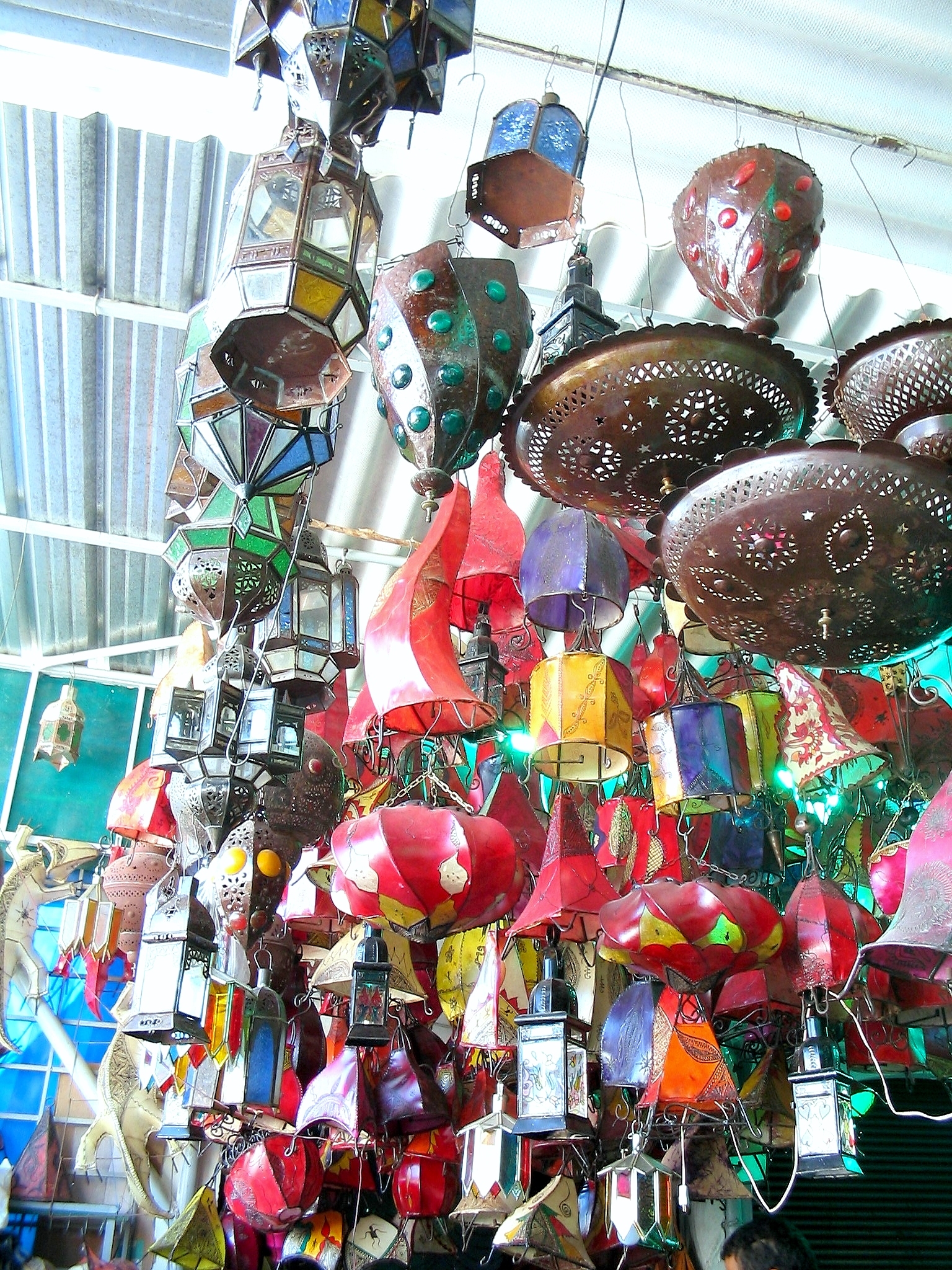 Puesto de lámparas en el zoco, Marrakech, Marruecos