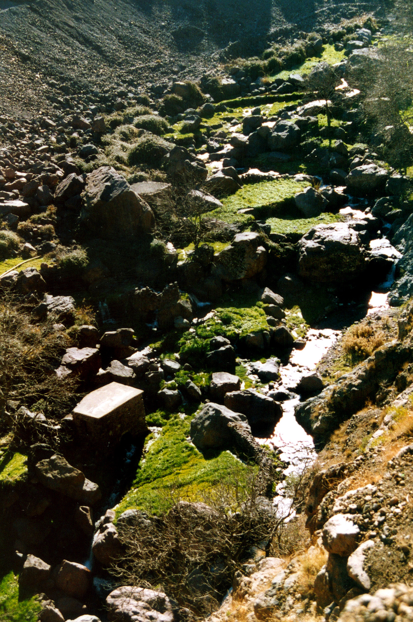 Cauce de agua en la ladera del Monte Toubkal, Marruecos