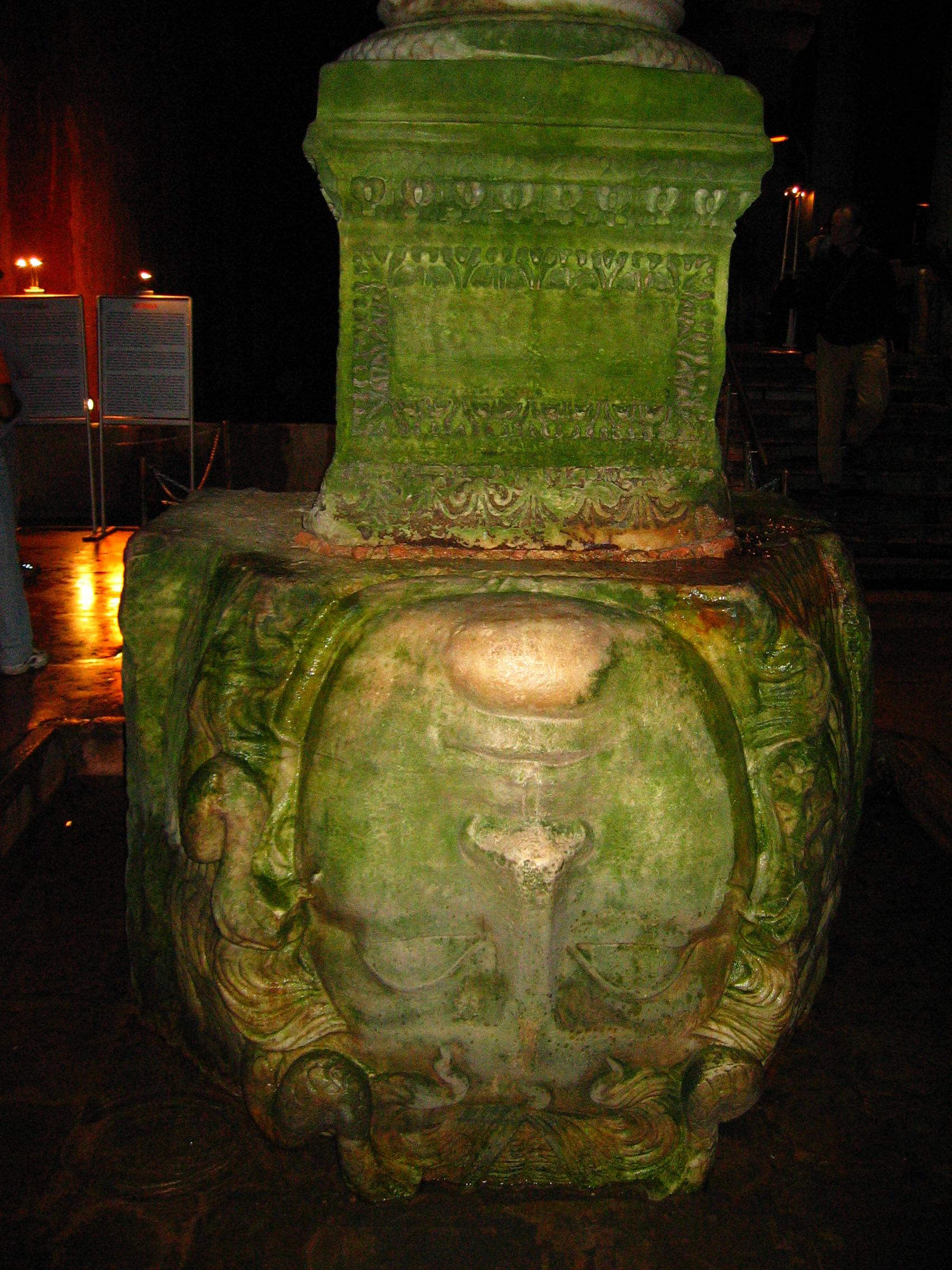 Roca labrada en las cisternas de Yerebatan Sarayi, Estambul, Turquía