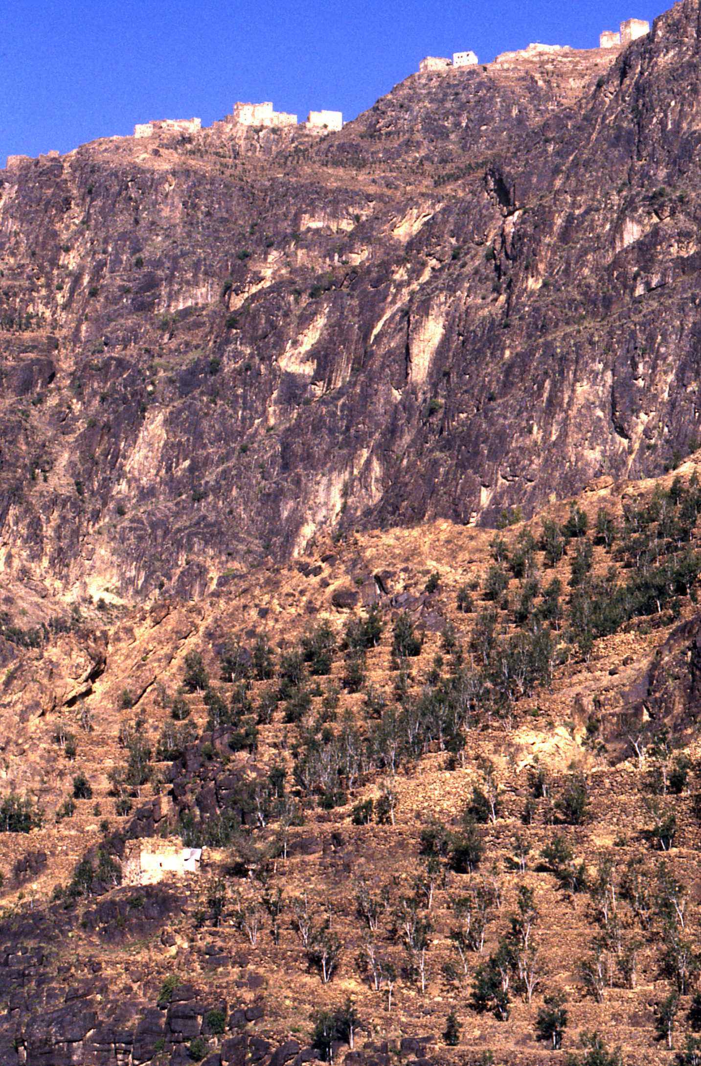 Vista de Shahara, en la cumbre de la montaña, Yemen