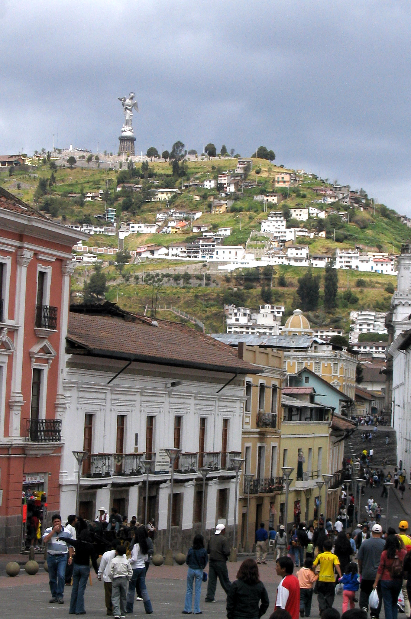 Colina de El Panecillo desde el centro antiguo en Quito, Ecuador