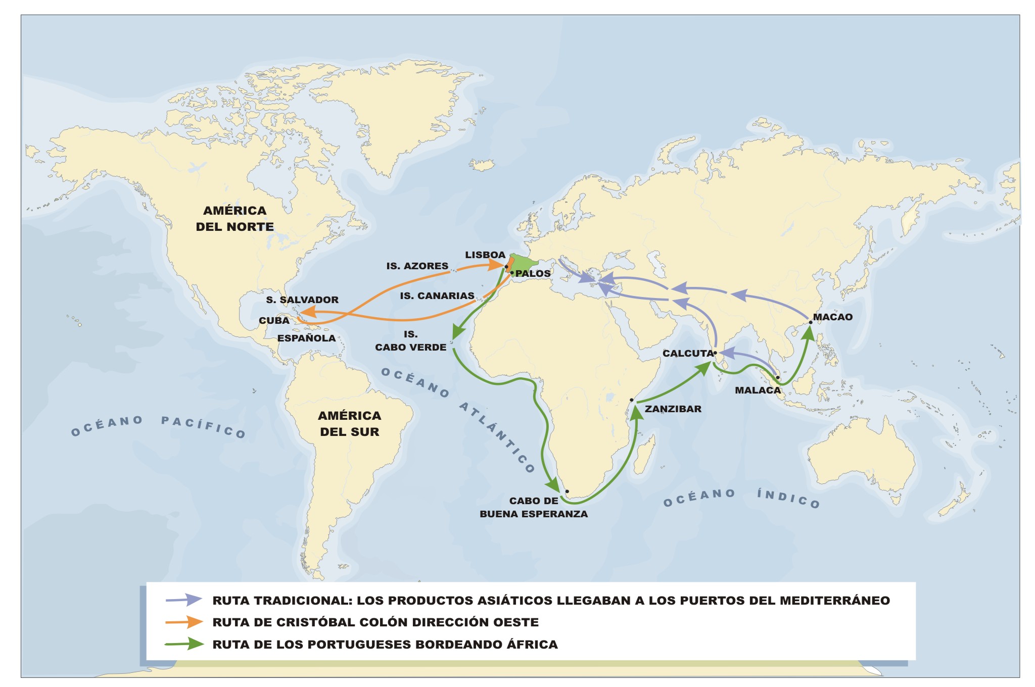 Mapa de las nuevas rutas marítimas descubiertas en la Edad Moderna