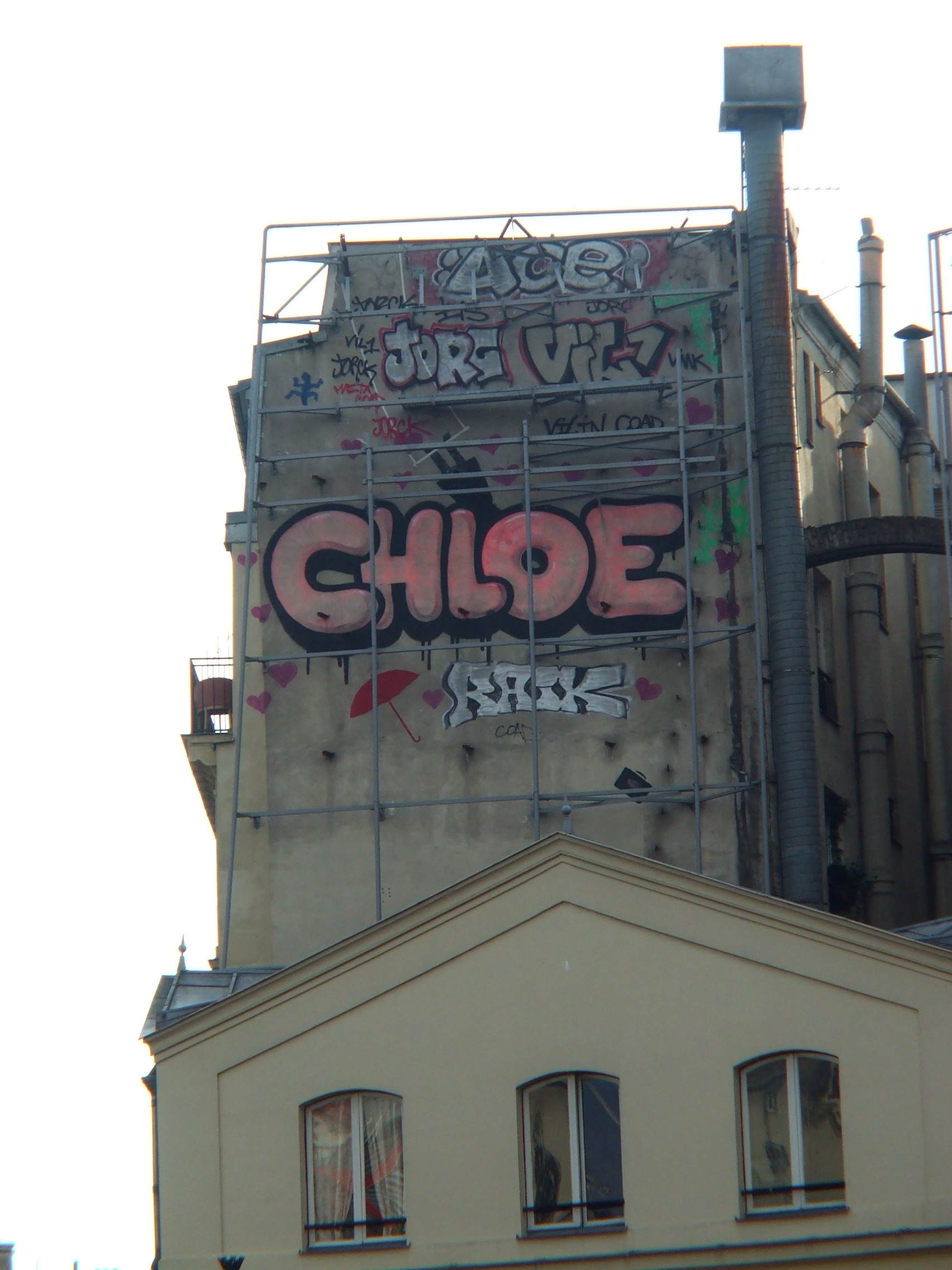 Pintada en la fachada de un edificio en un barrio turístico, París