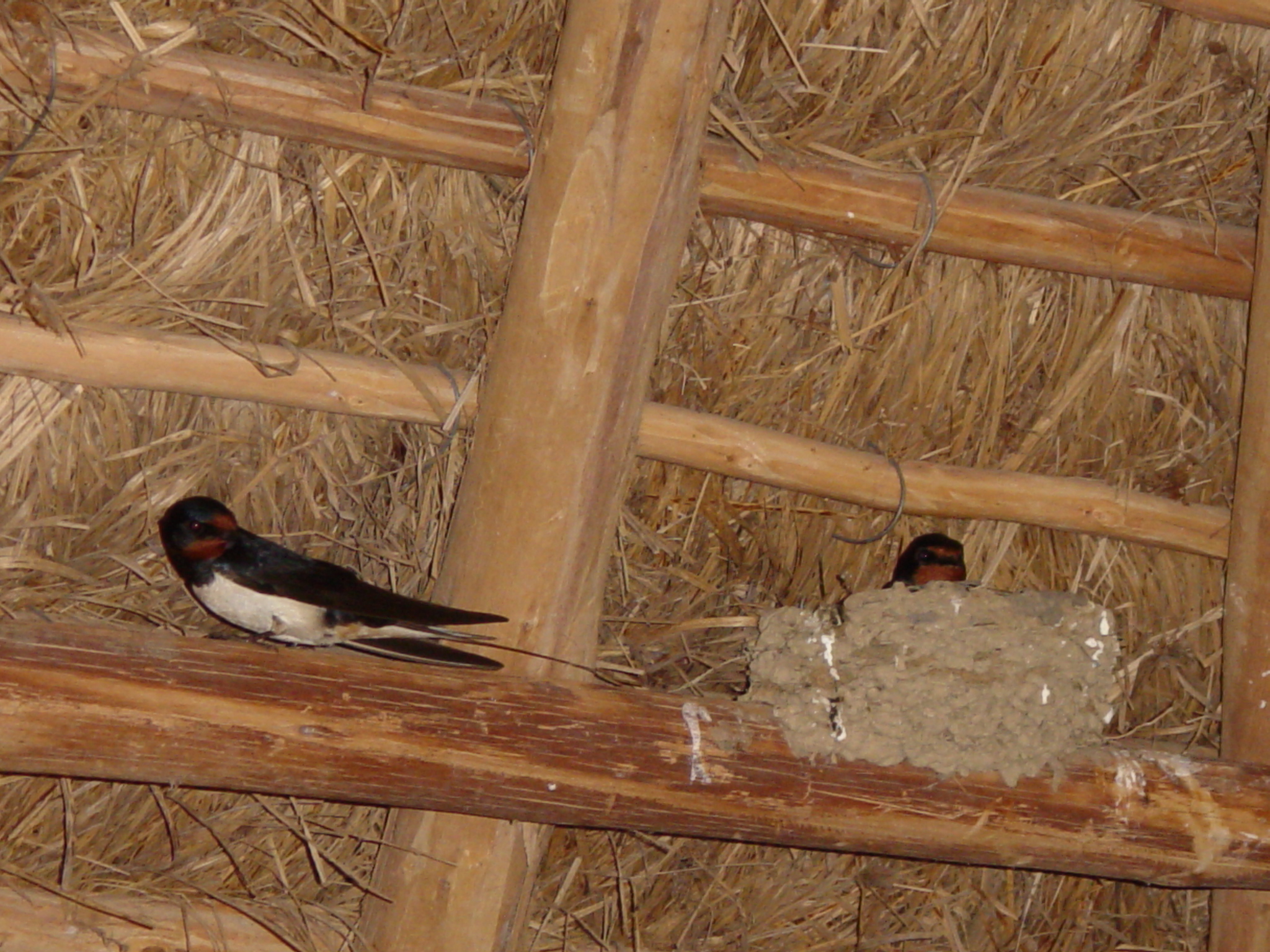 Golondrina común en su nido, Choza del observatorio de LaLaguna del Acebuche, Parque Nacional de Doñana, Huelva