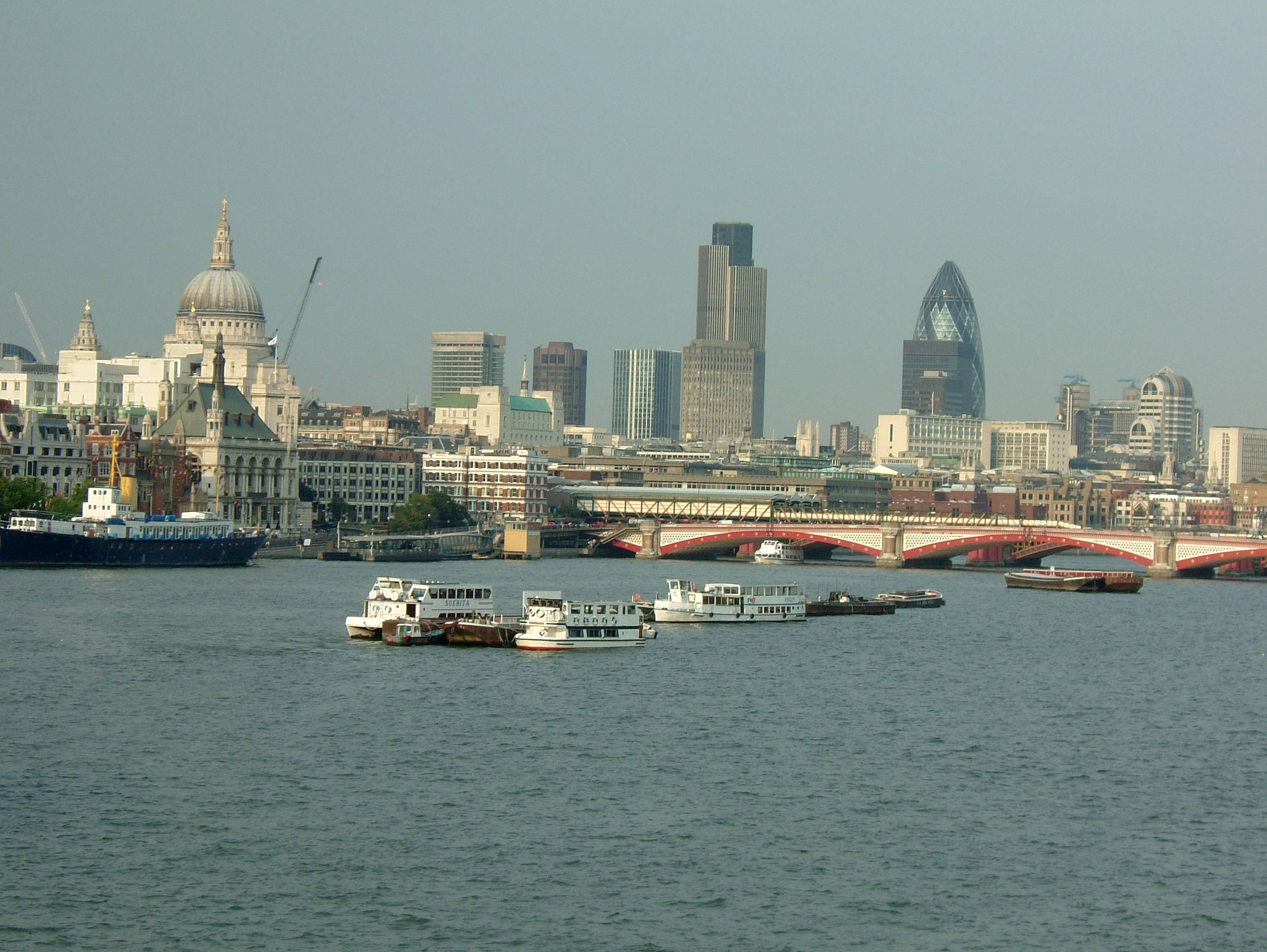 Vista de rascacielos desde el Támesis, Londres, Reino Unido