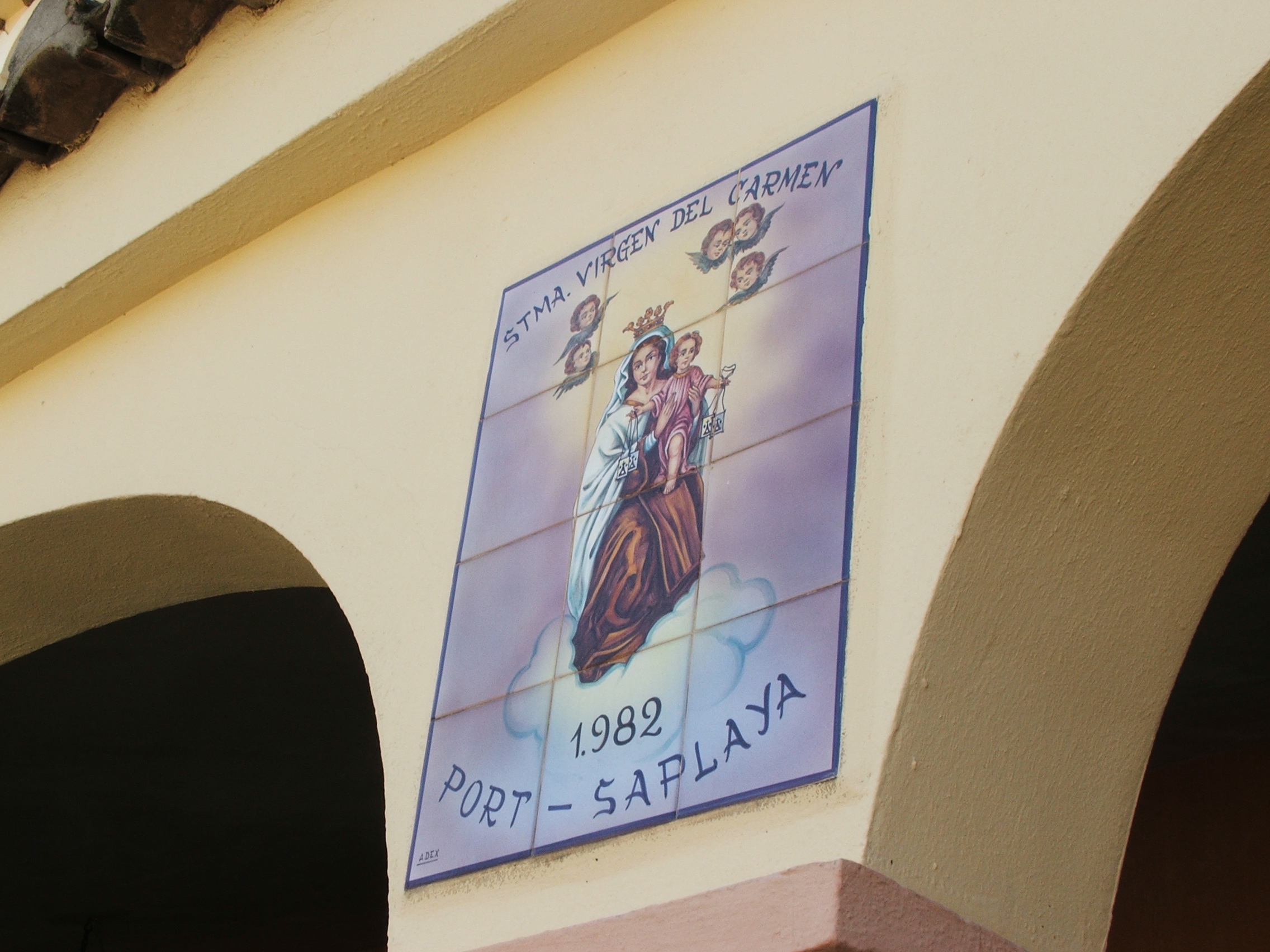 Cartel con la imágen de la Virgen del Carmen, Port Saplaya, Alboraya, Valencia, Comunidad Valenciana