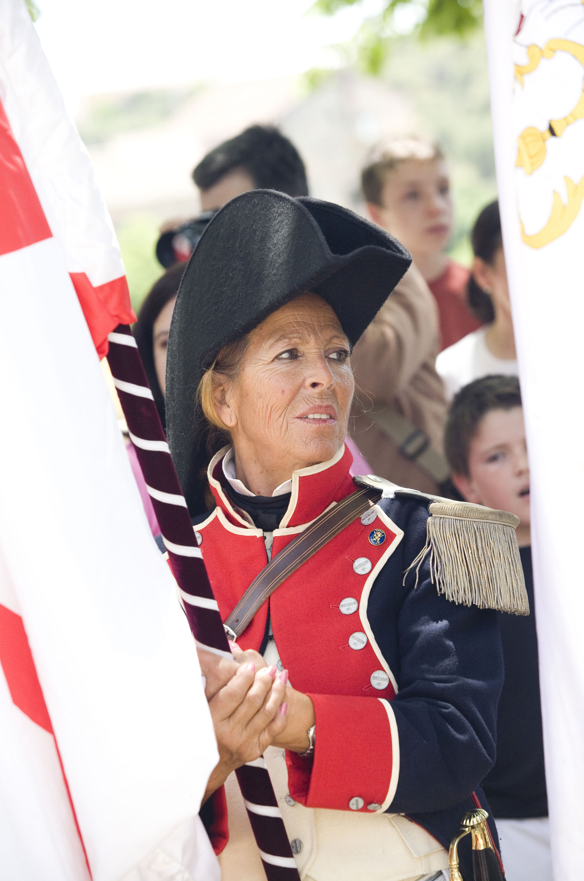 Recreación de la Guerra de la Independencia en Segovia: Mujer soldado de las tropas francesas sujetando una bandera
