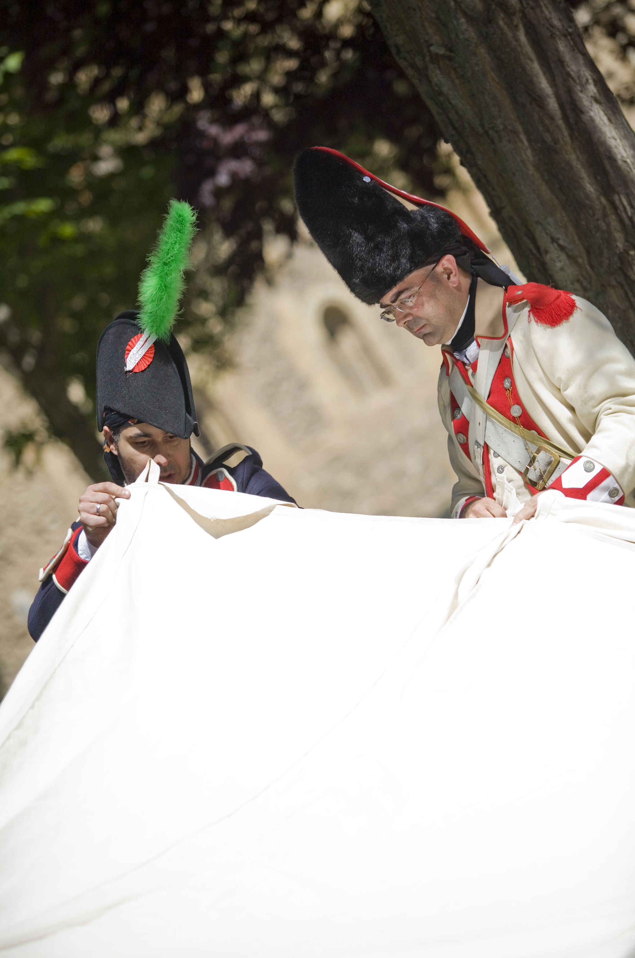 Recreación de la Guerra de la Independencia en Segovia: Demostración del montaje de una tienda en el campamento de tropas españolas
