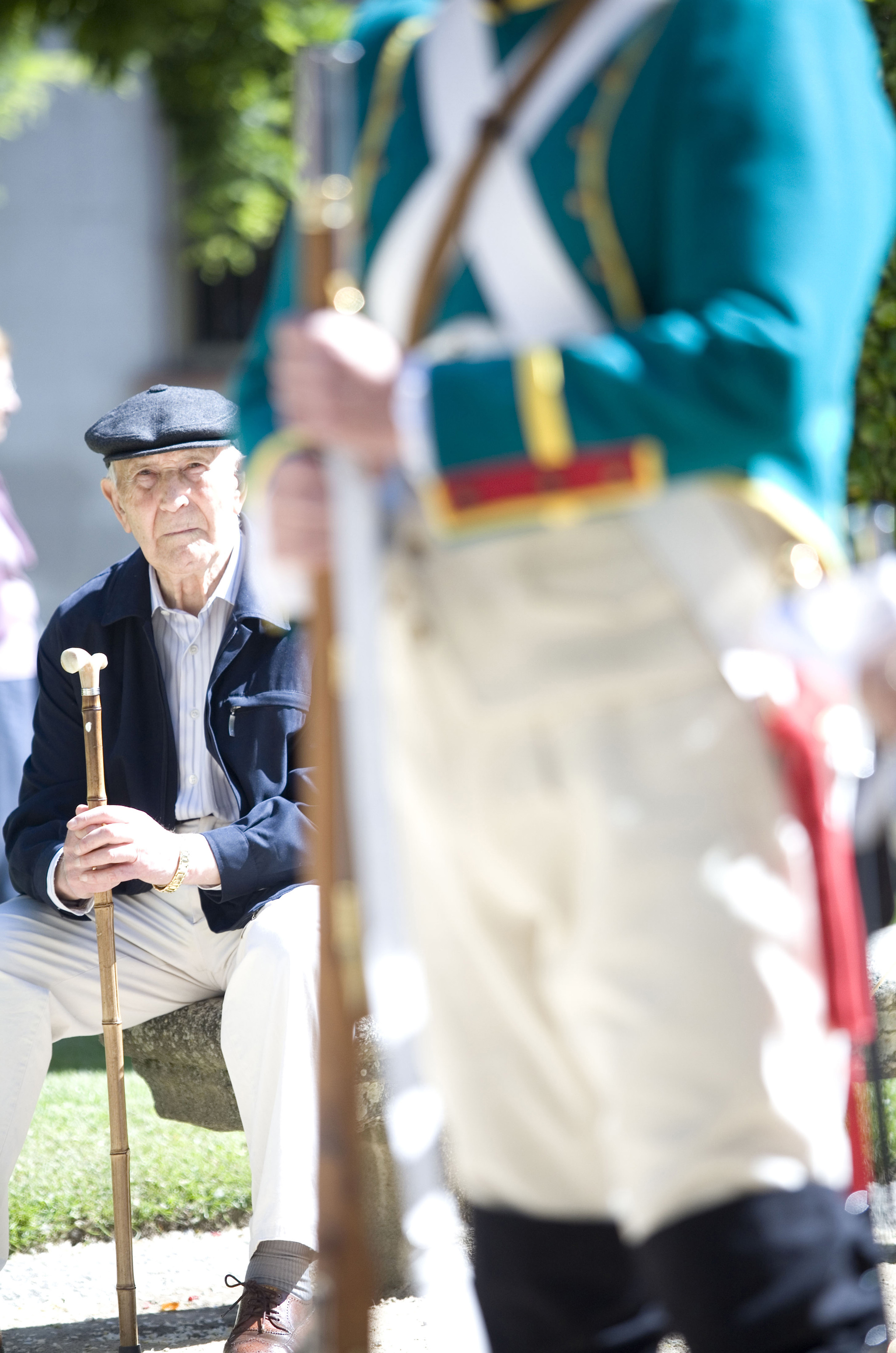 Recreación de la Guerra de la Independencia en Segovia: Anciano observando una demostración de disparos de armas de las tropas españolas