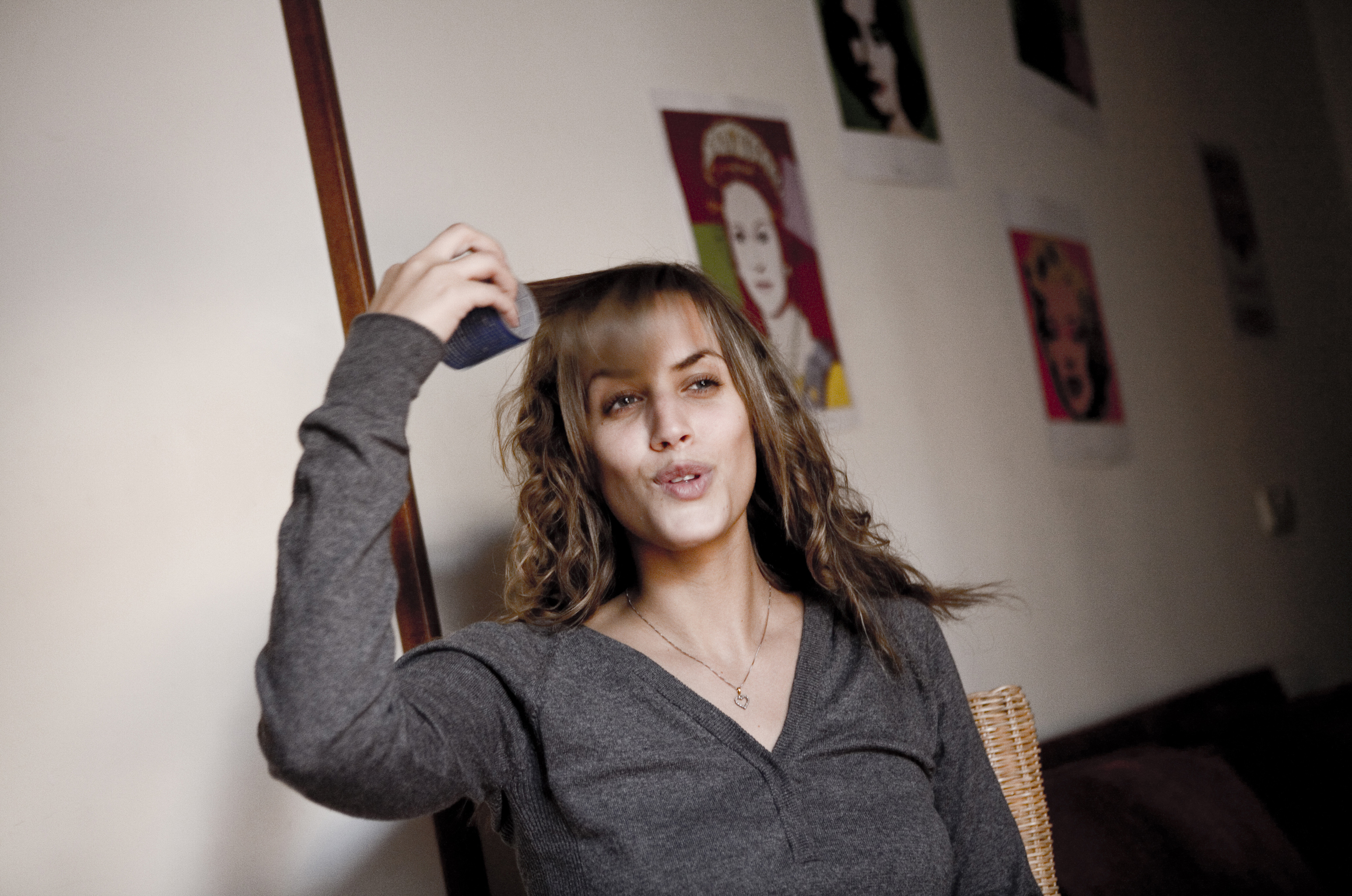 Inmigrante de padres norteamericanos y argentinos residente en Madrid, quitándose un rulo