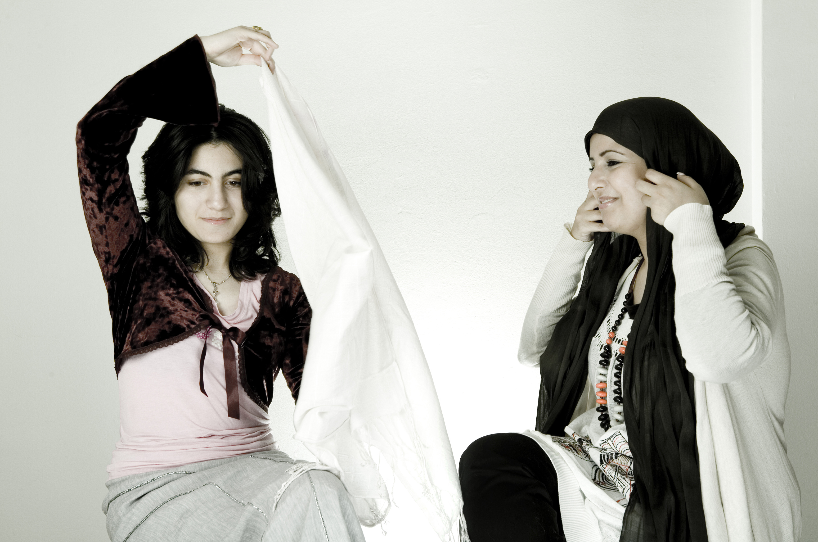 Dos mujeres inmigrantes de Libia y Arabia Saudí se ponen el velo islámico
