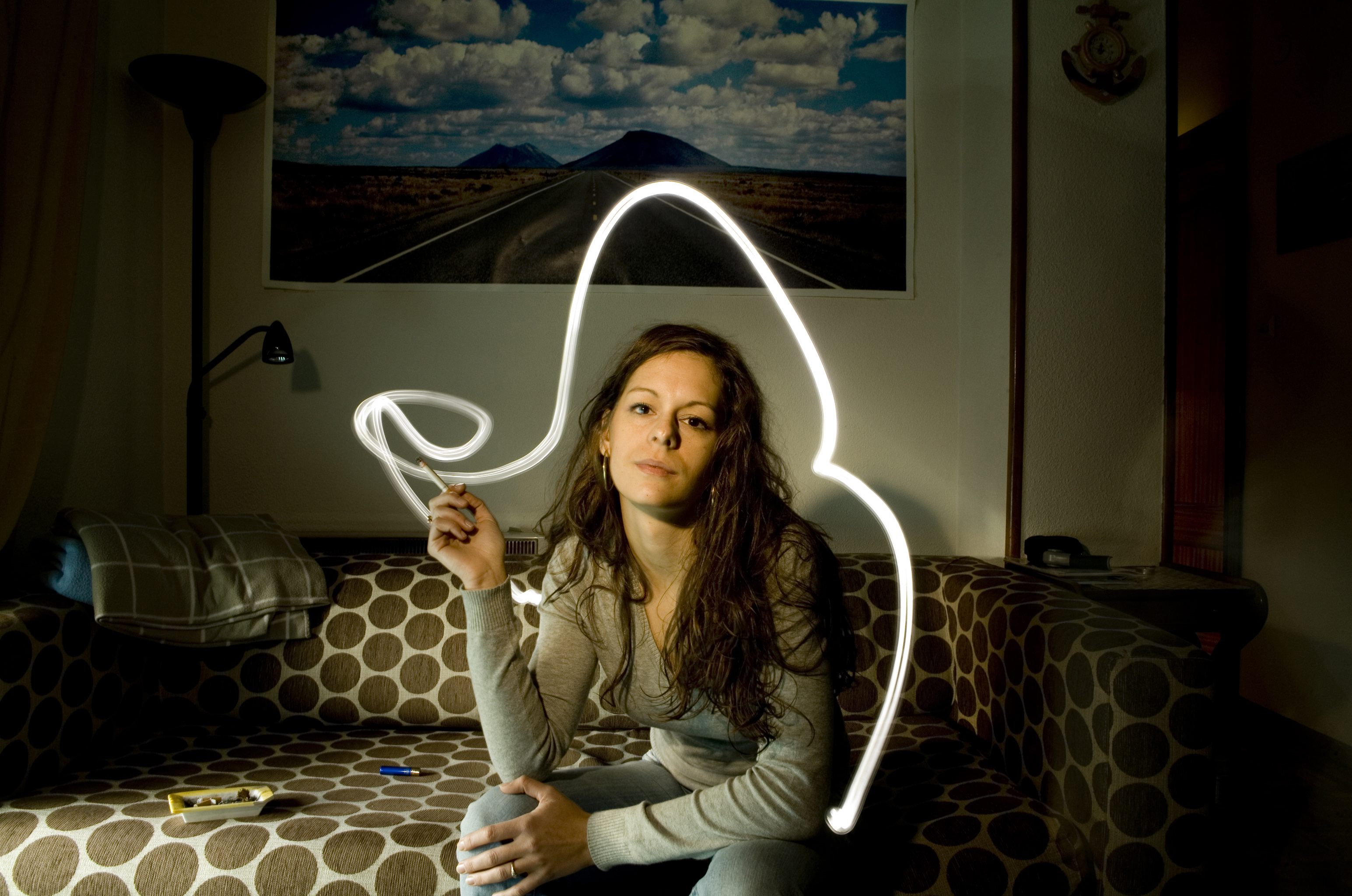 Inmigrante polaca residente en Madrid fumando