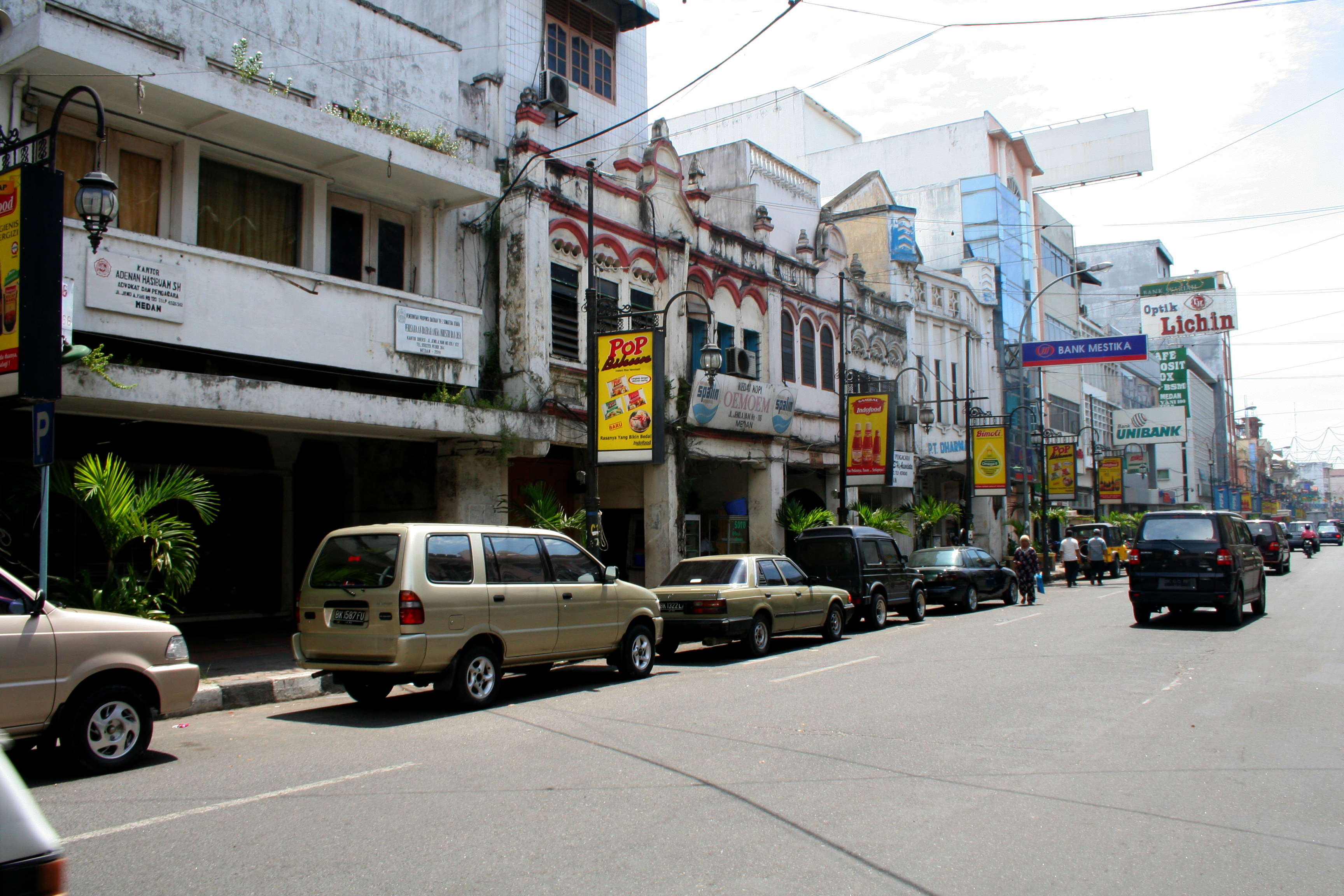 Edificios coloniales del barrio chino de Medam, Sumatra, Indonesia