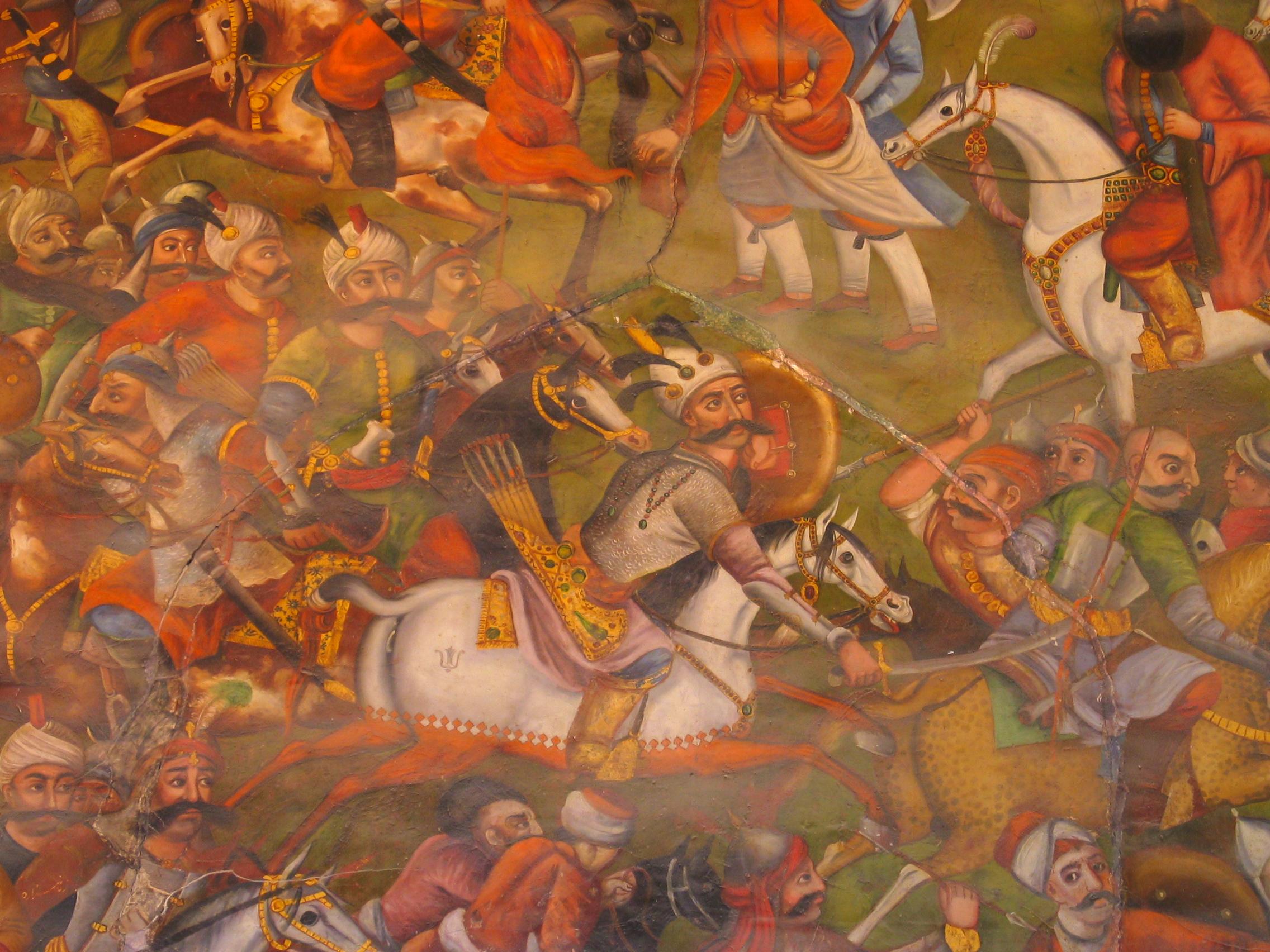 Detalle de la escena de una batalla, interior del palacio Chehel Sutun, Isfahán, Irán