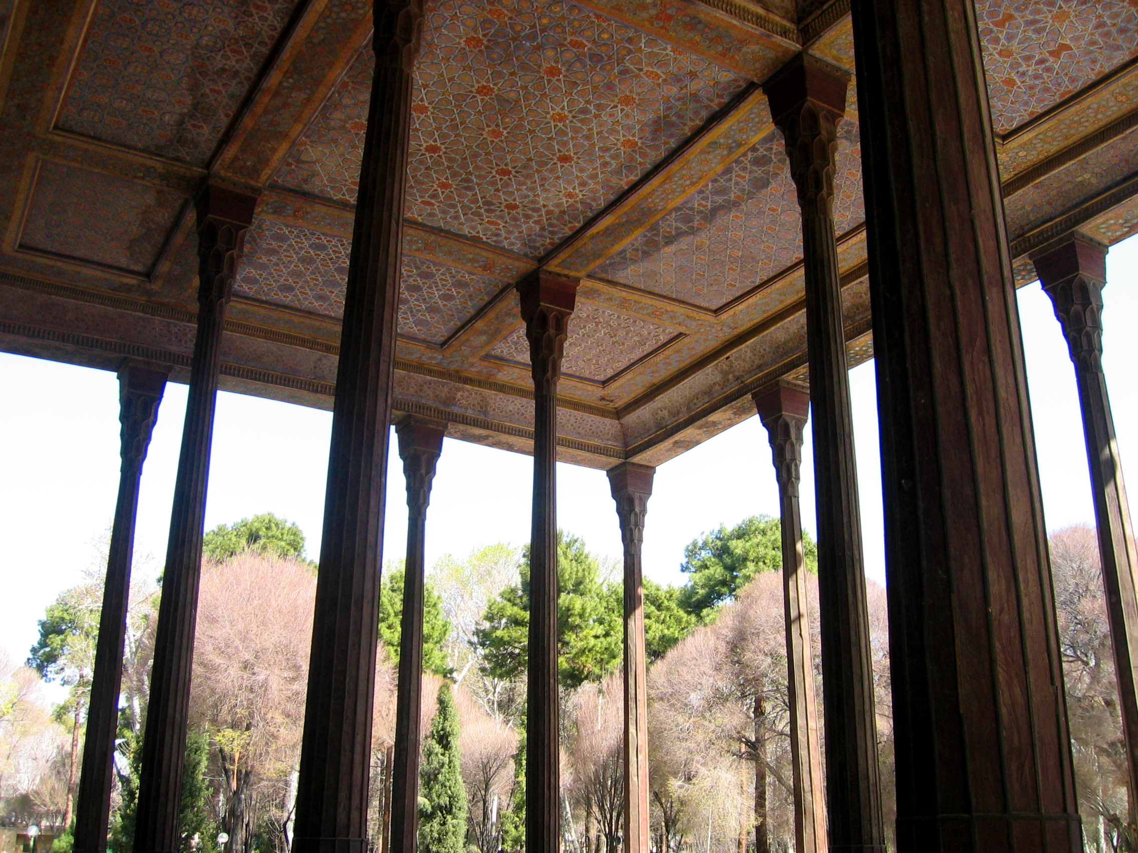 Columnas del palacio de Chehel Sutun, Isfahán, Irán