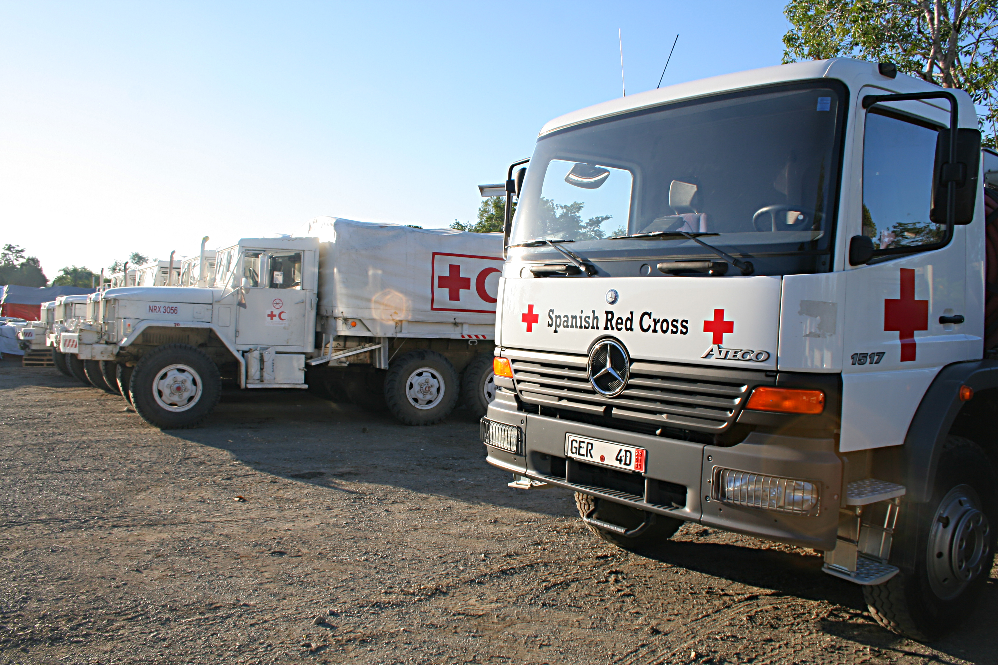 Camiones de Cruz Roja de Melaboh, Sumatra, Indonesia