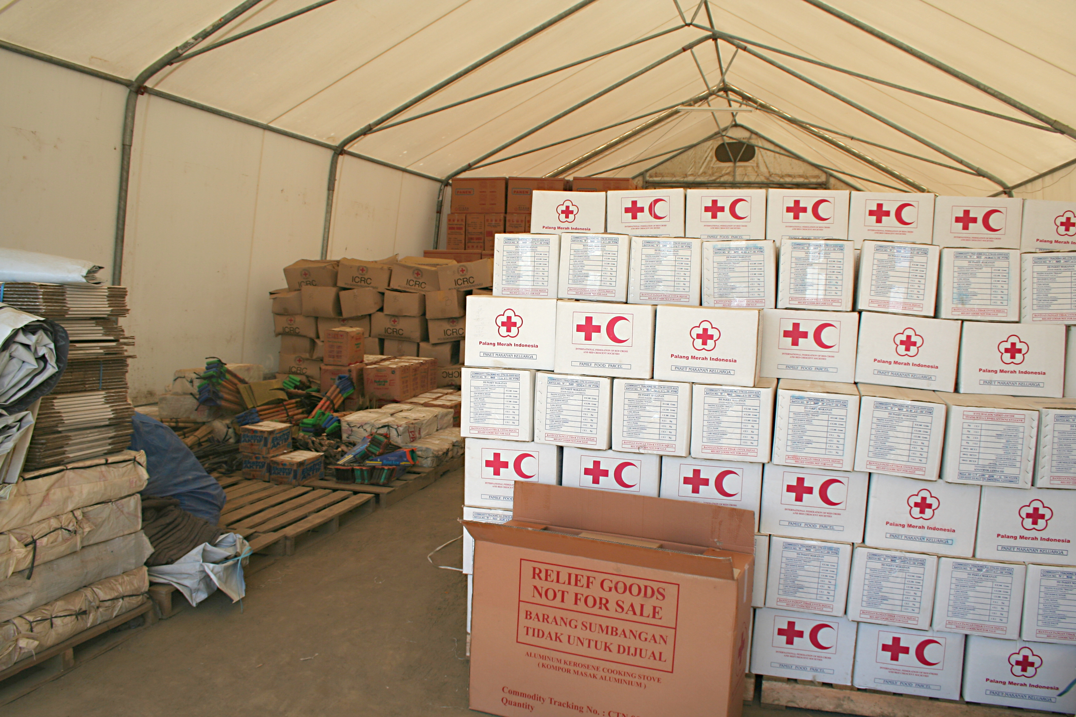 Almacén de productos de la Cruz Roja de Melaboh, Sumatra, Indonesia
