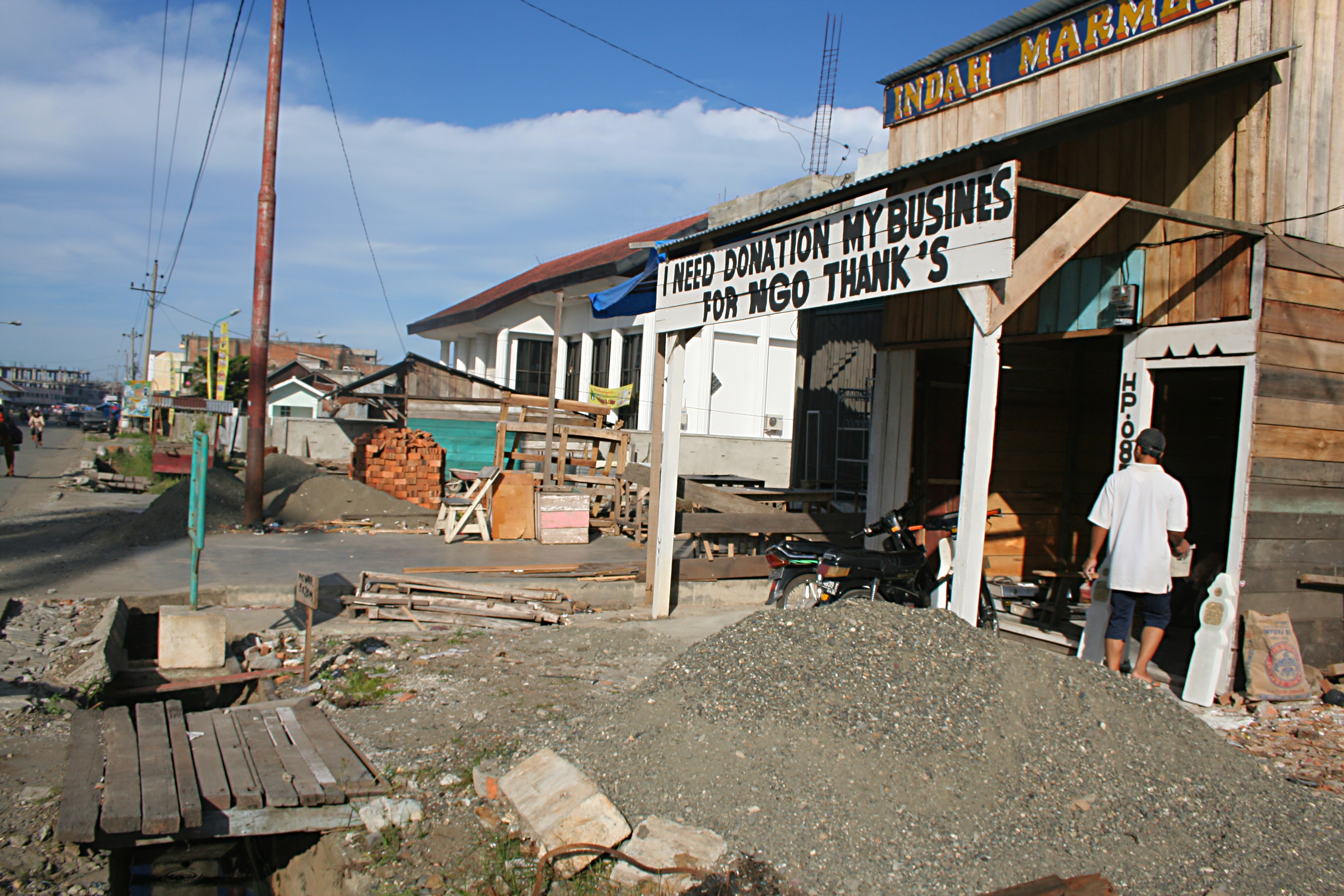 Reclamando ayuda en Melaboh, Sumatra, Indonesia