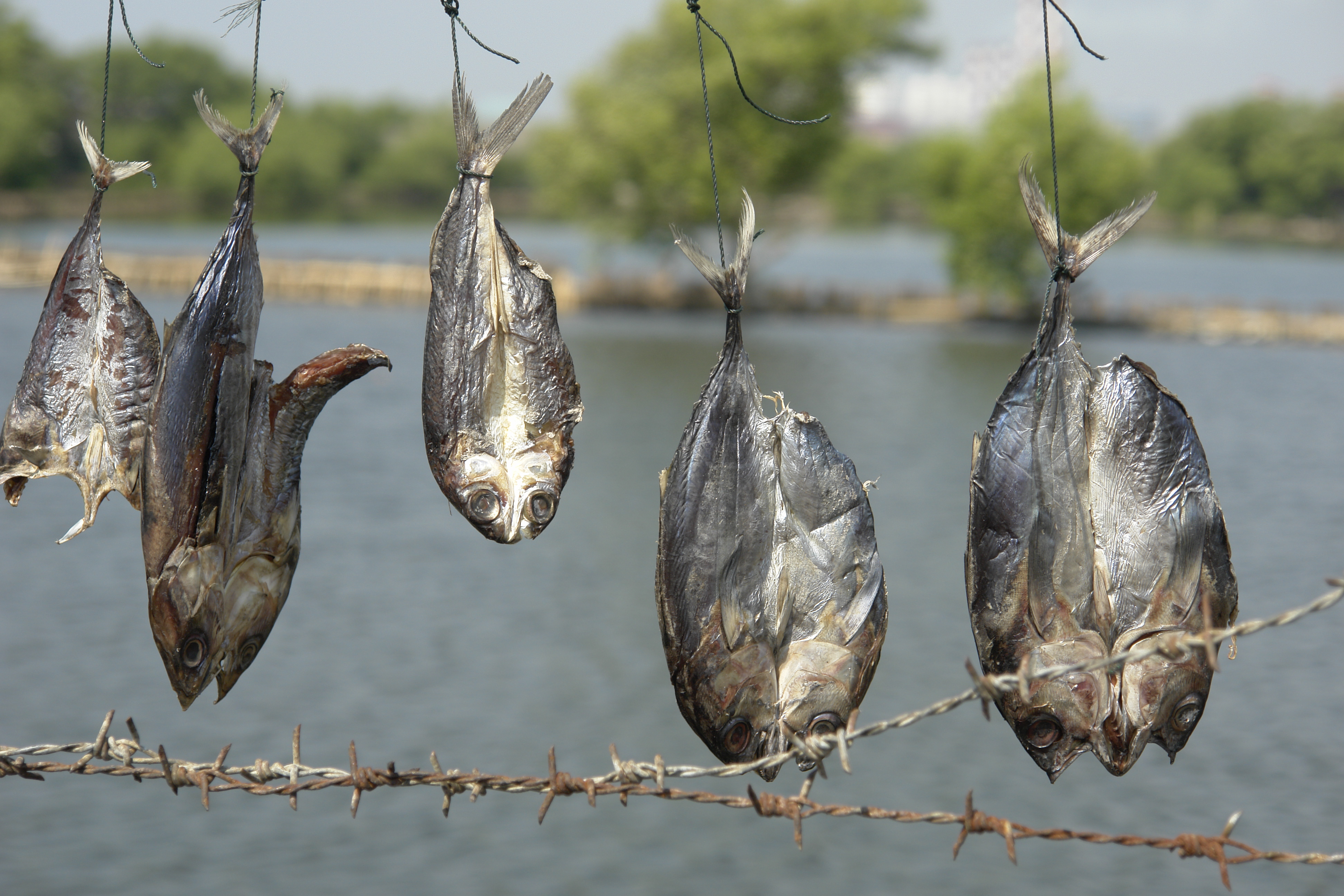 Pescado seco en el puerto de Muara Angke, Yakarta, Indonesia