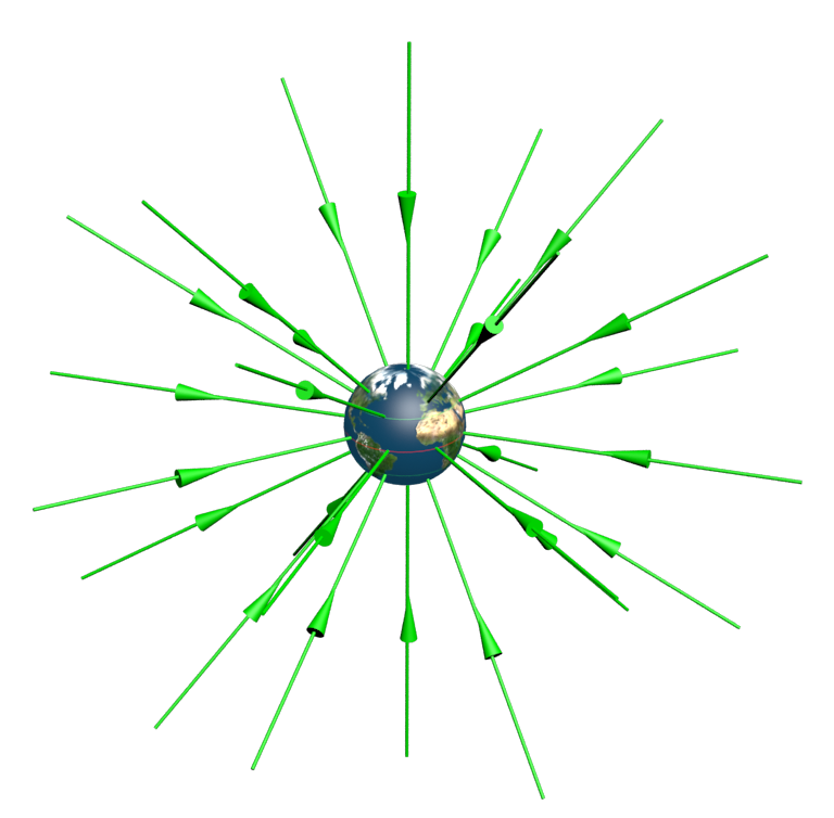 Líneas de campo gravitatorio asociado a la Tierra.