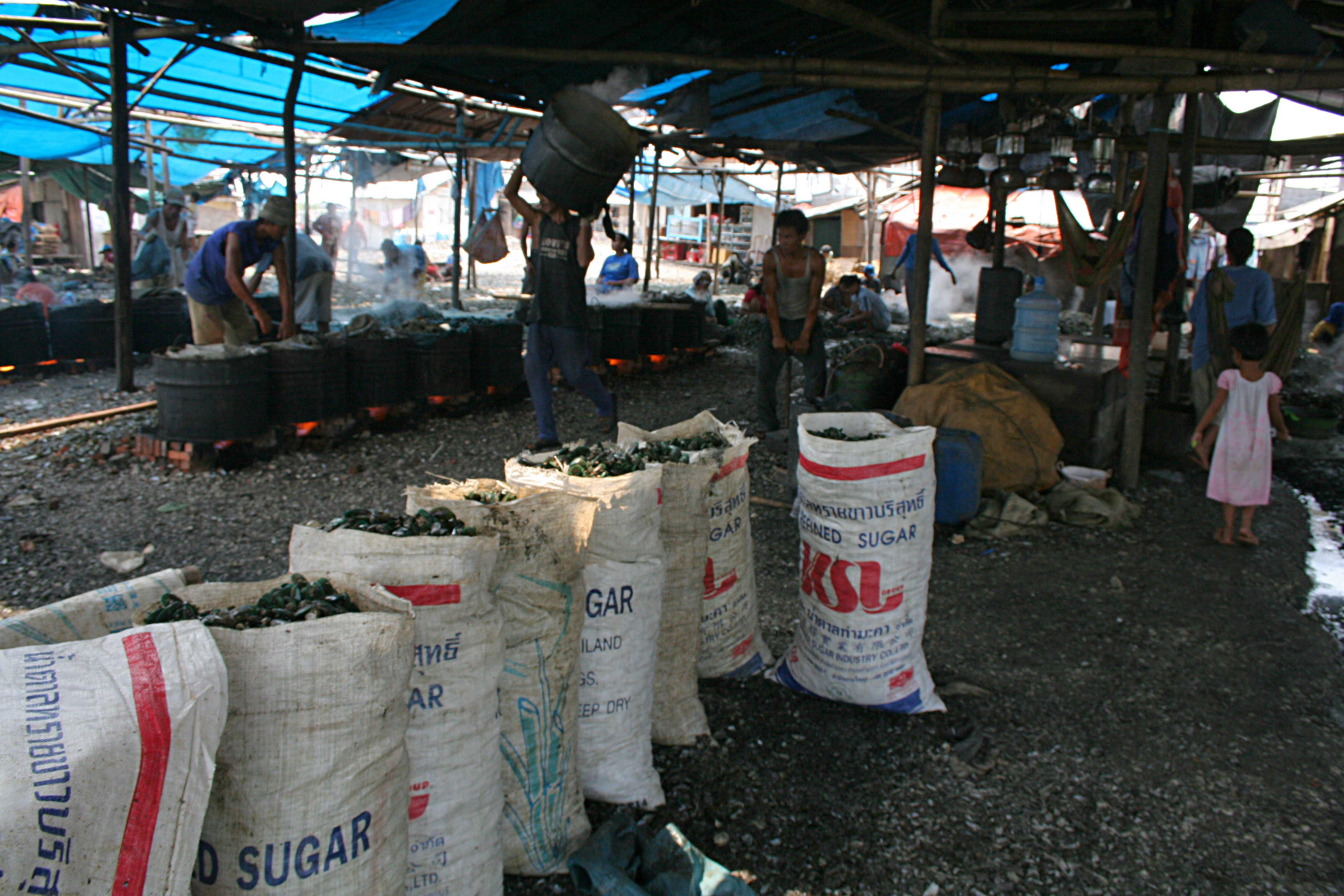 Sacos de mejillones, Jakarta, Indonesia