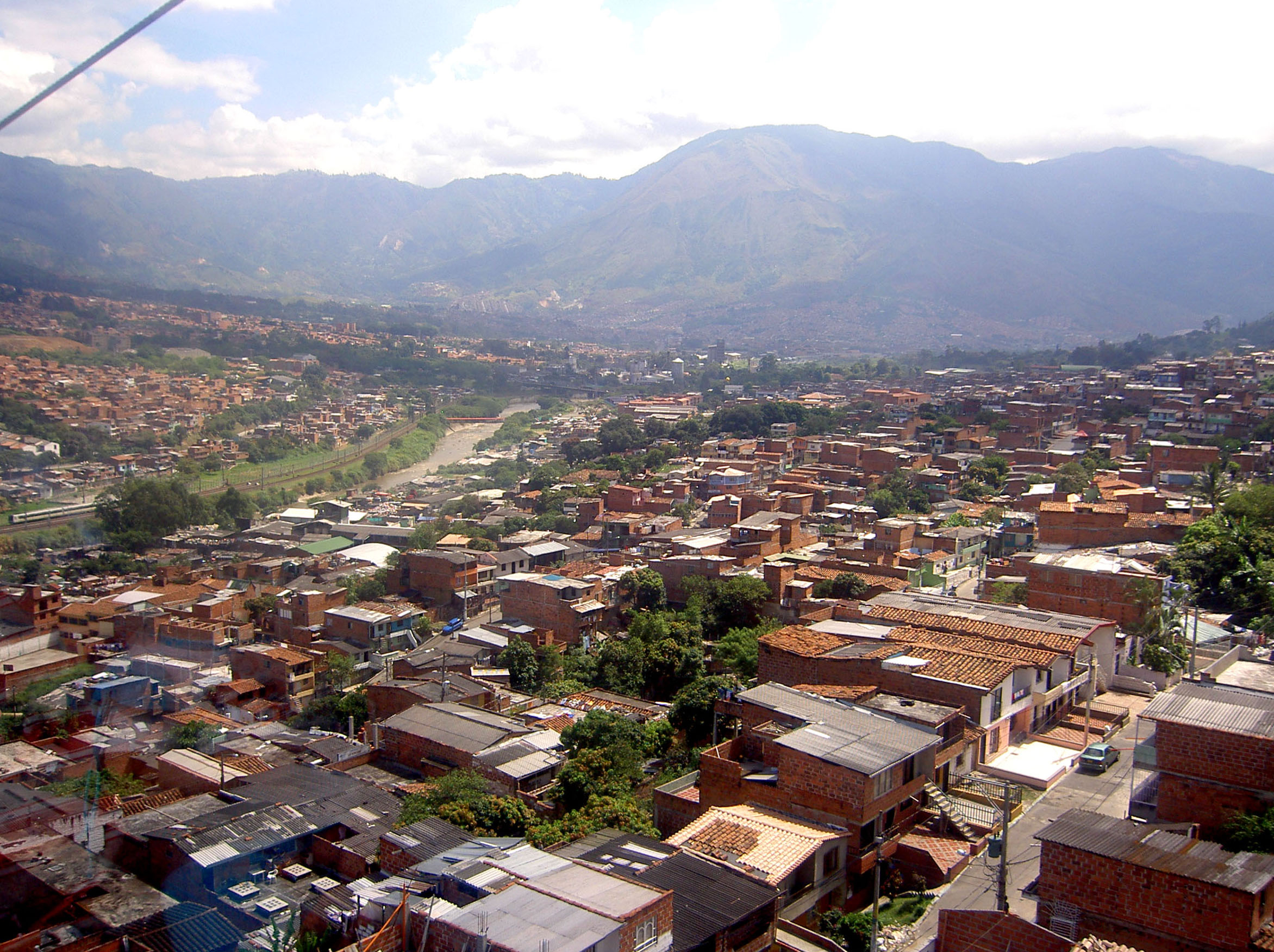 Vistas de un barrio de viviendas en Medellín, Colombia.
