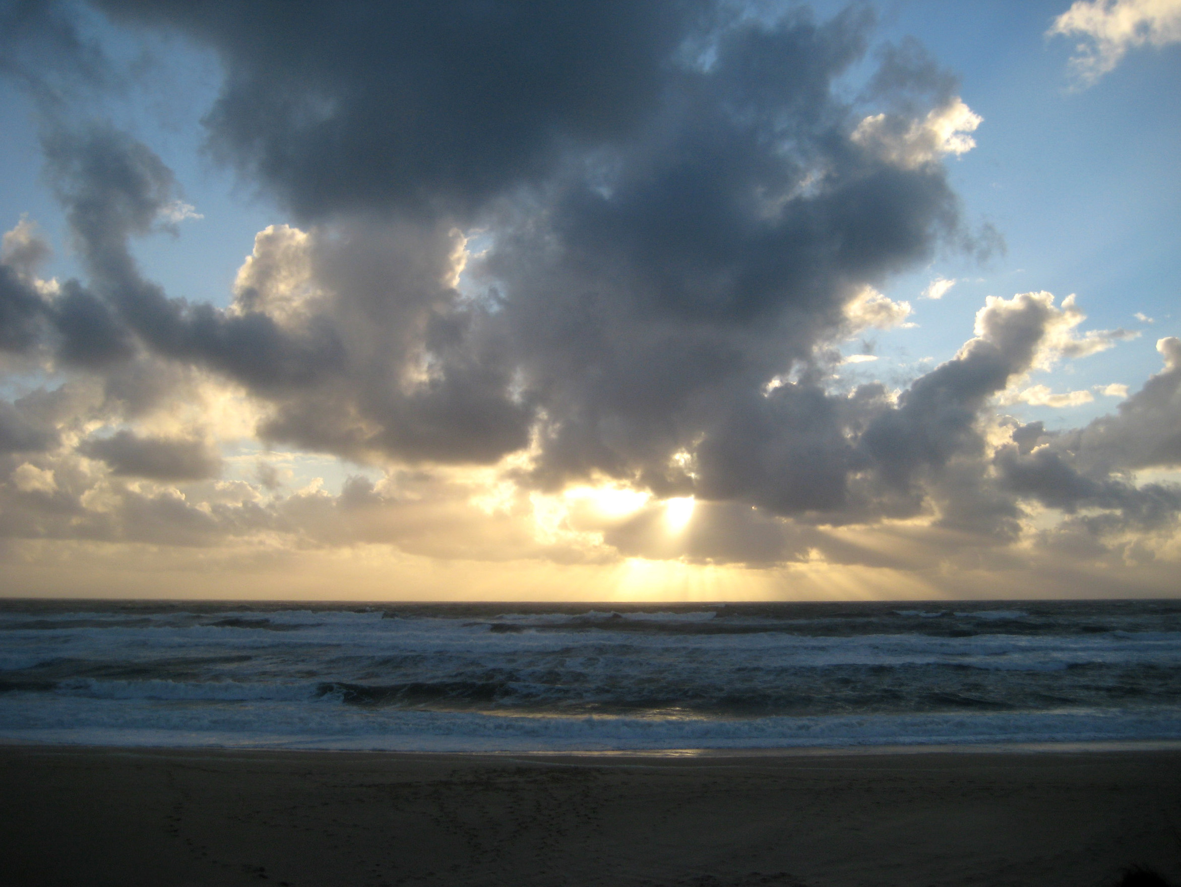 Puesta de sol en la playa del cabo Ferret de la costa atlántica de Francia.