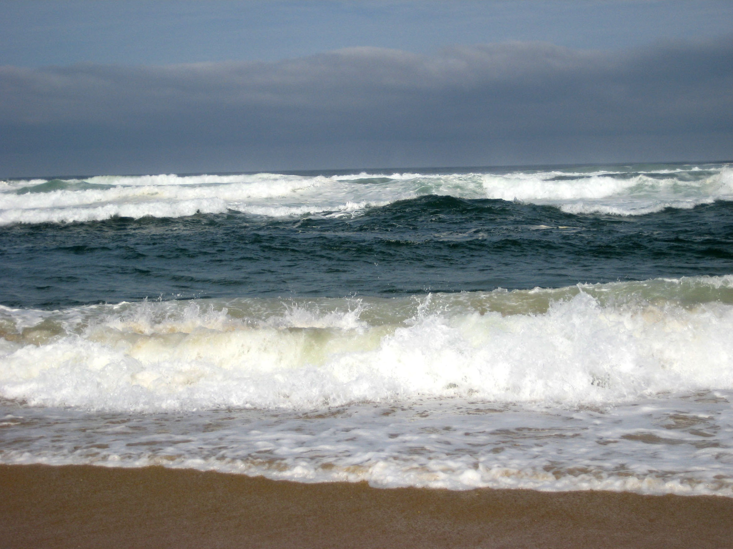 Paisaje de oleaje en una playa del Cabo Ferret, en Francia, con el cielo nublado