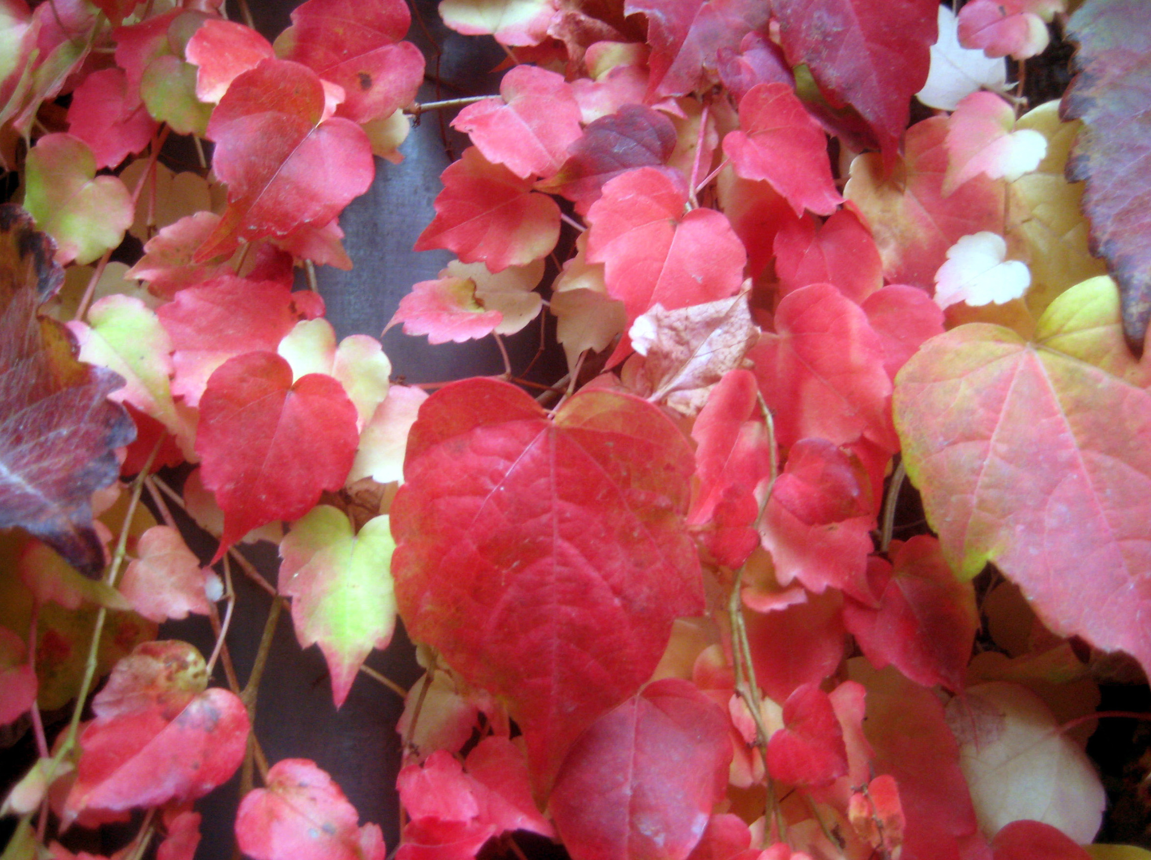Detalle hojas de una planta con colores otoñales en Brujas.