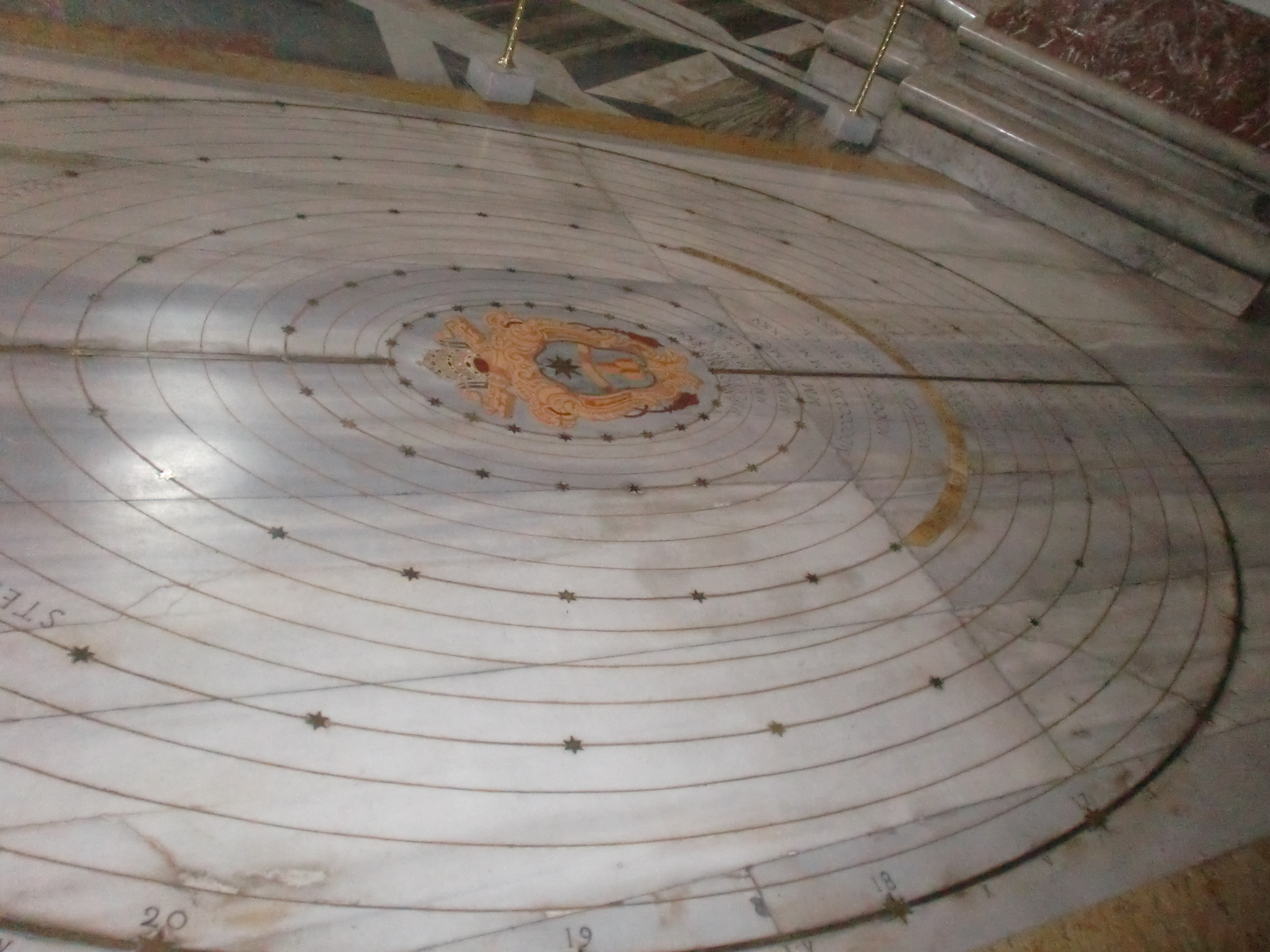 Interior Basílica de Santa María de Los Ángeles y Los Mártires, Roma (Italia). Vista de la Meridiana solar o reloj del sol.
