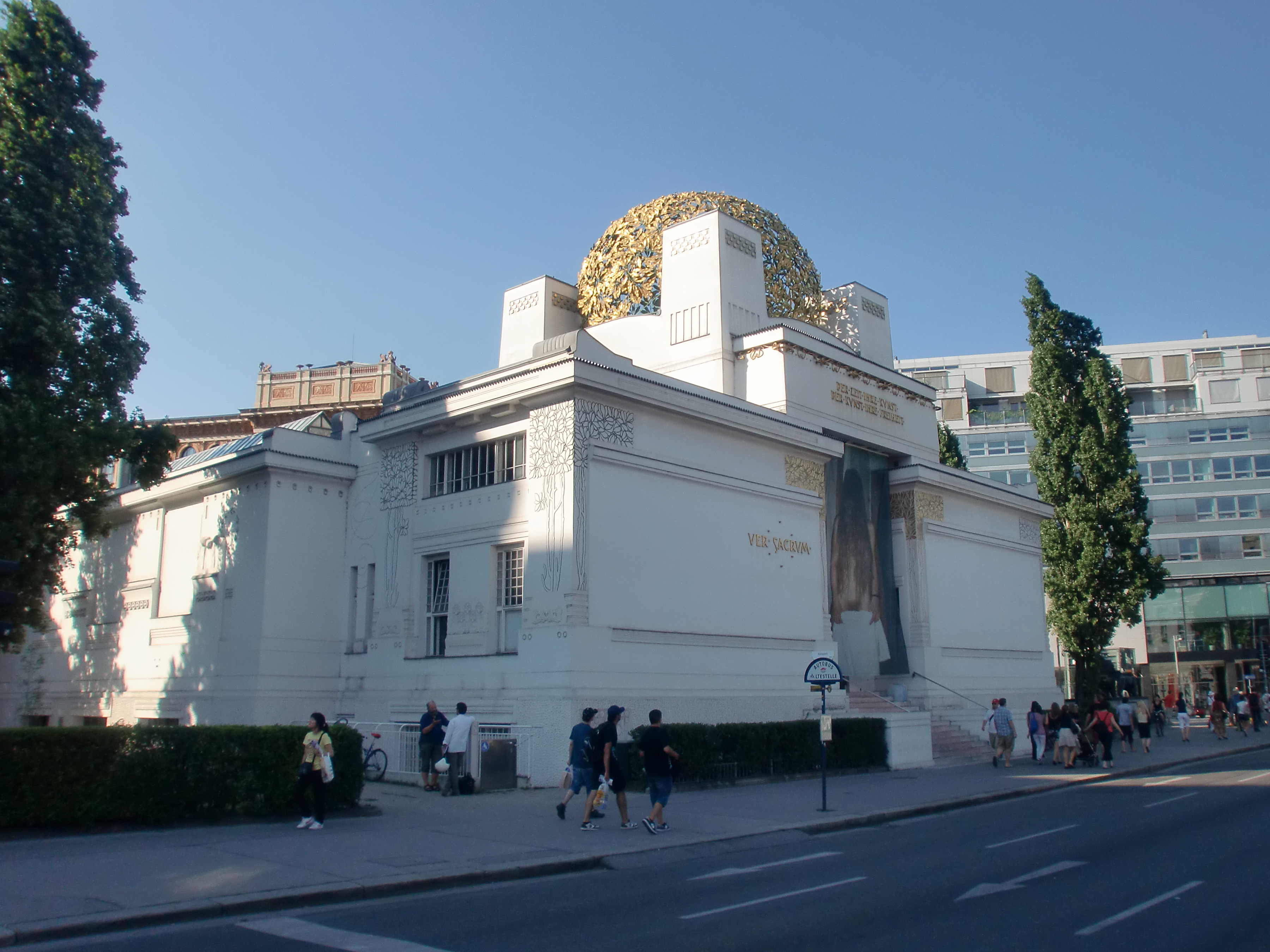 Fachada del pabellón de exposiciones de la Secesión vienesa en Viena.