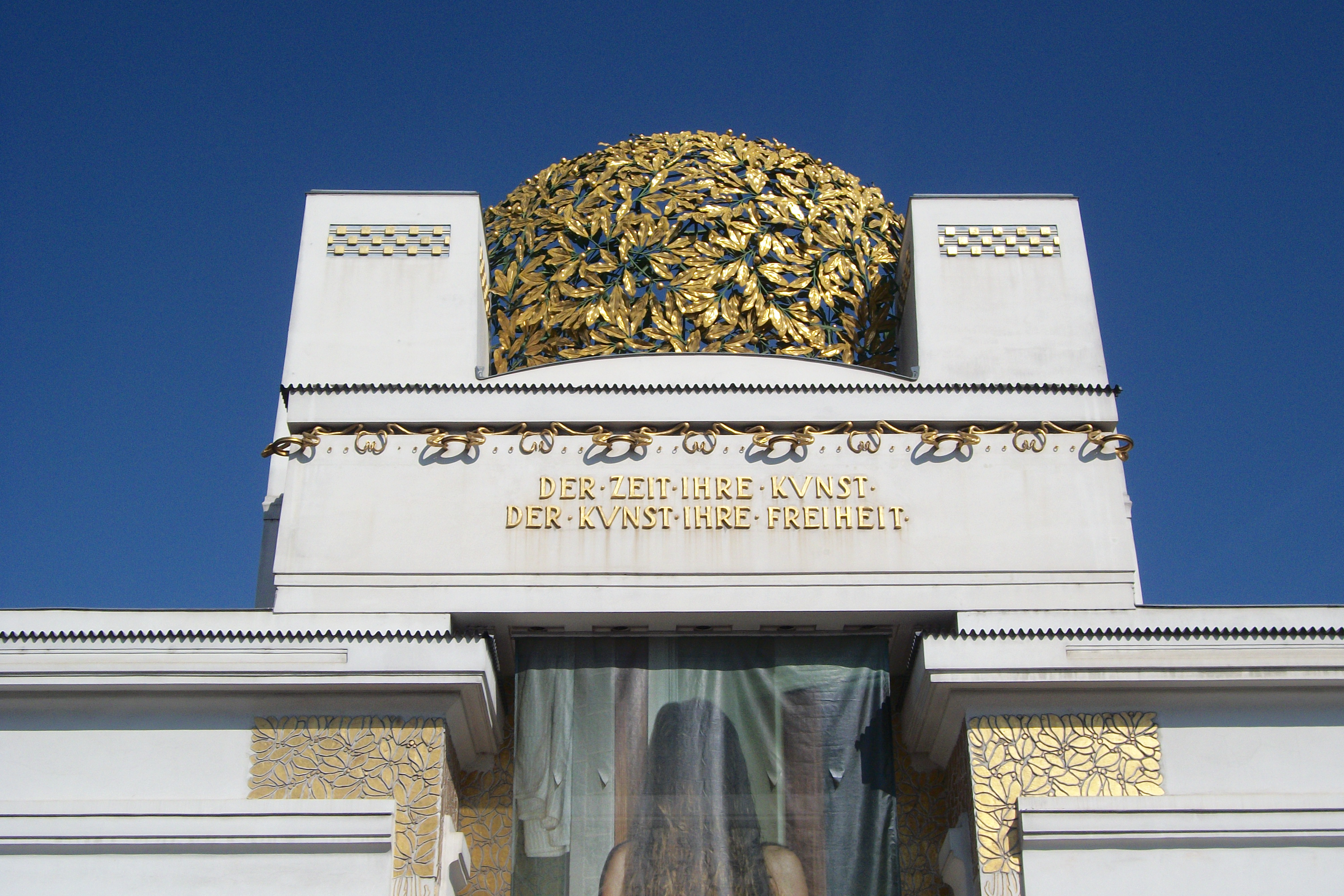 Detalle de la fachada del pabellón de exposiciones de la Secesión vienesa en Viena.