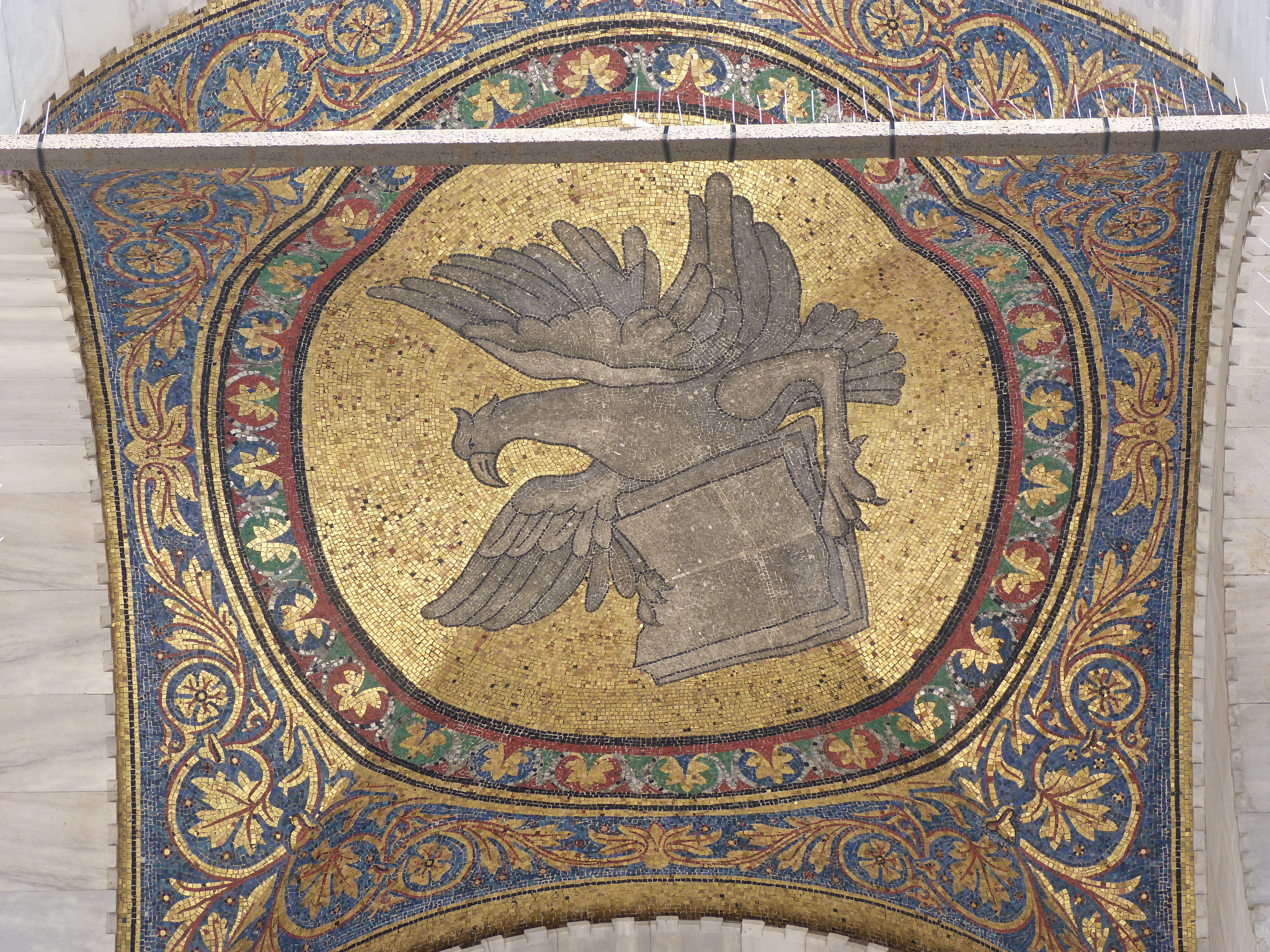 Mosaico de un águila y un libro en la Catedral de San Marcos