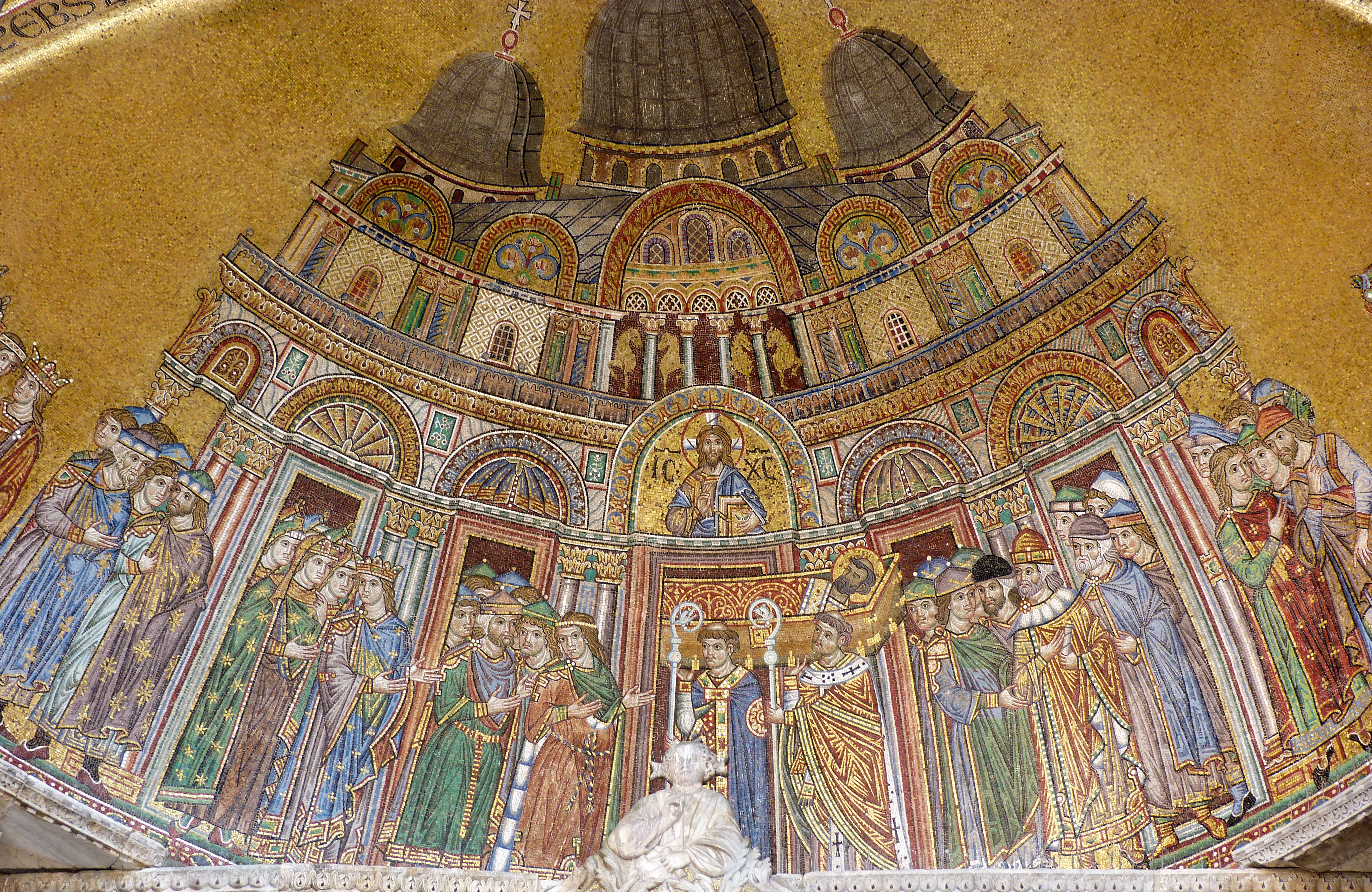 Representación en mosaico de la basílica de San Marcos de Venecia en la fachada de la misma