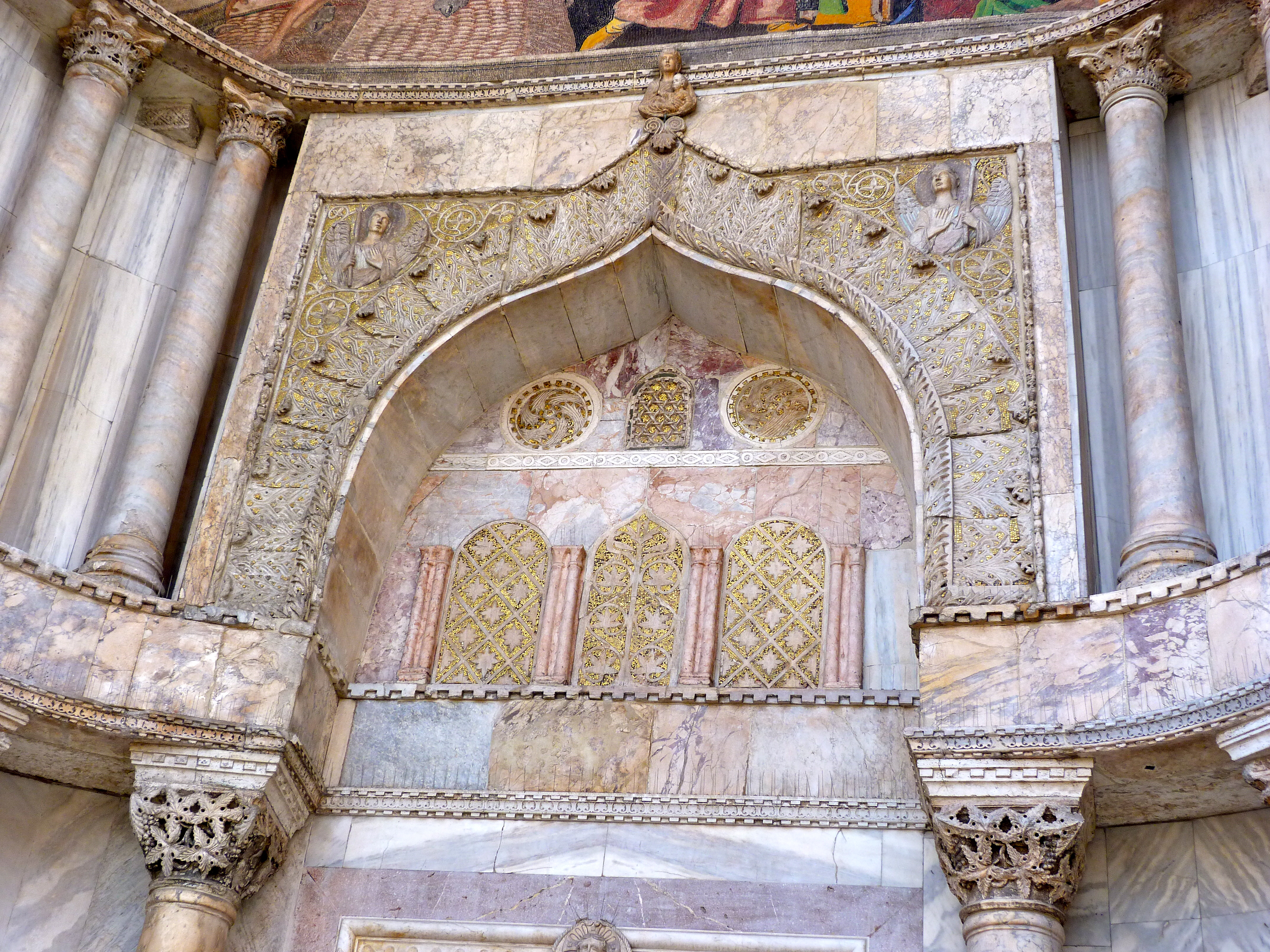 Arco conopial y detalles dorados en la Basílica de San Marcos