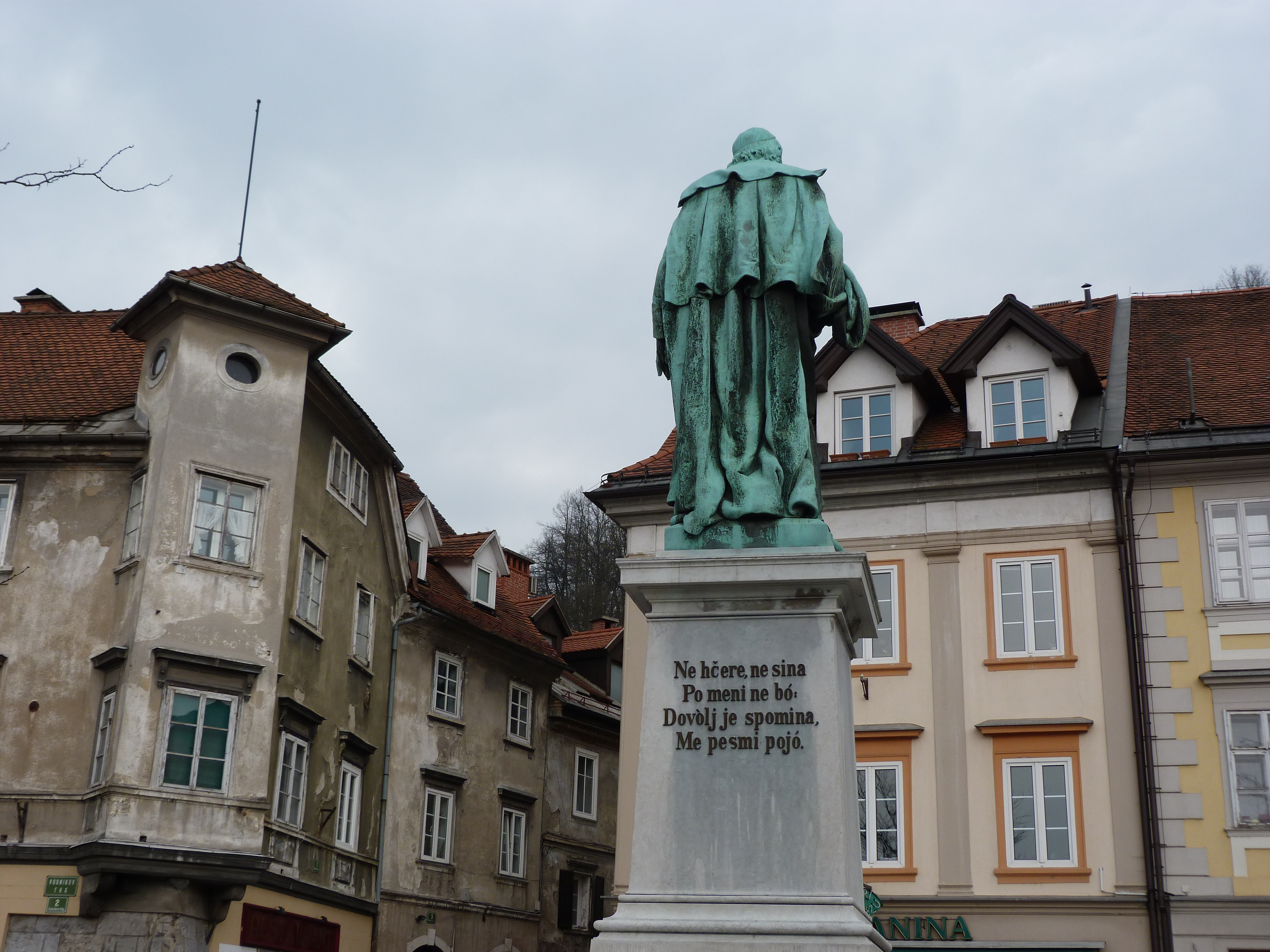 Escultura del poeta Valentín Vodnik, Liubliana, Eslovenia