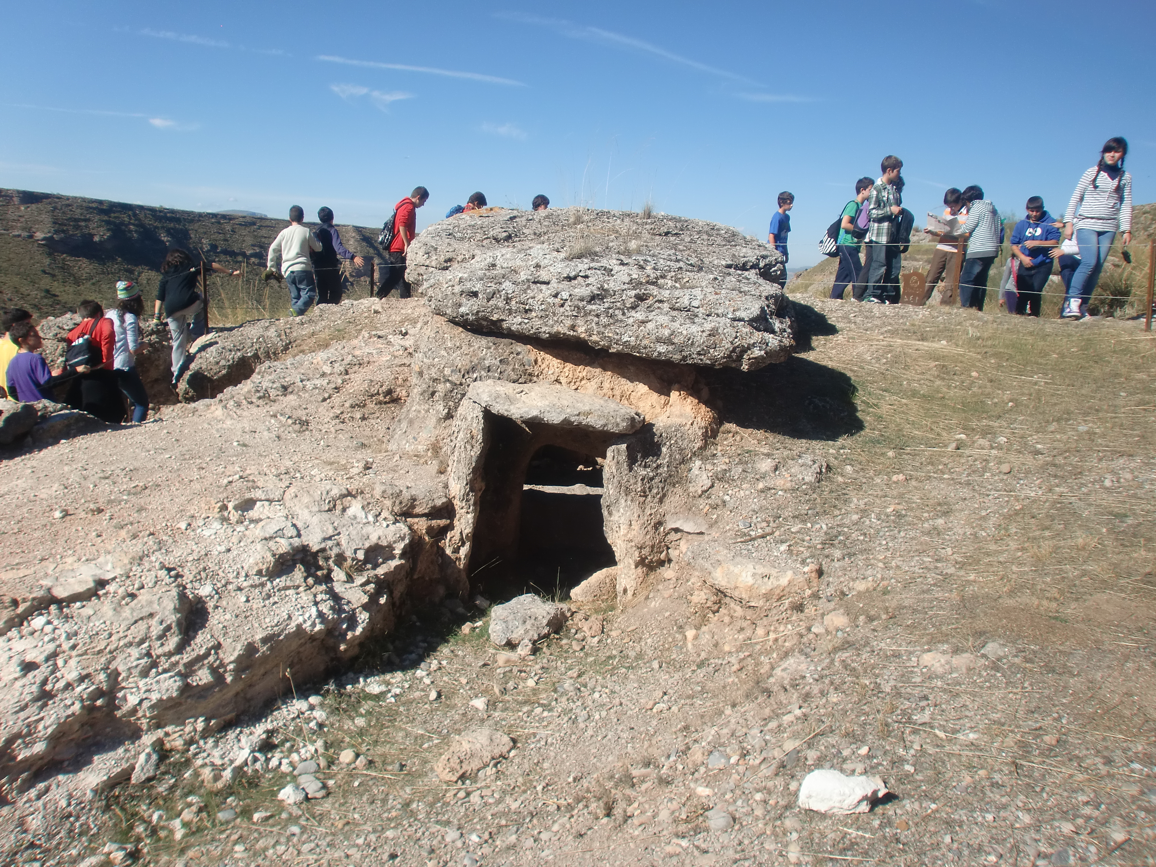 Dolmen en Gorafe. Un total de 37 dólmenes del Parque megalítico de Gorafe han sido habilitados para su visita de los 242 monumentos funerarios documentados para los márgenes del río Gor. Los dólmenes de este yacimiento arqueológico tienen una cronología que abarca desde el Neolítico hasta la Edad de Bronce y sus morfologías son muy variables si bien la mayoría de ellos se corresponden con el modelo de tumba de corredor, con una cámara con galería sobre un túmulo.