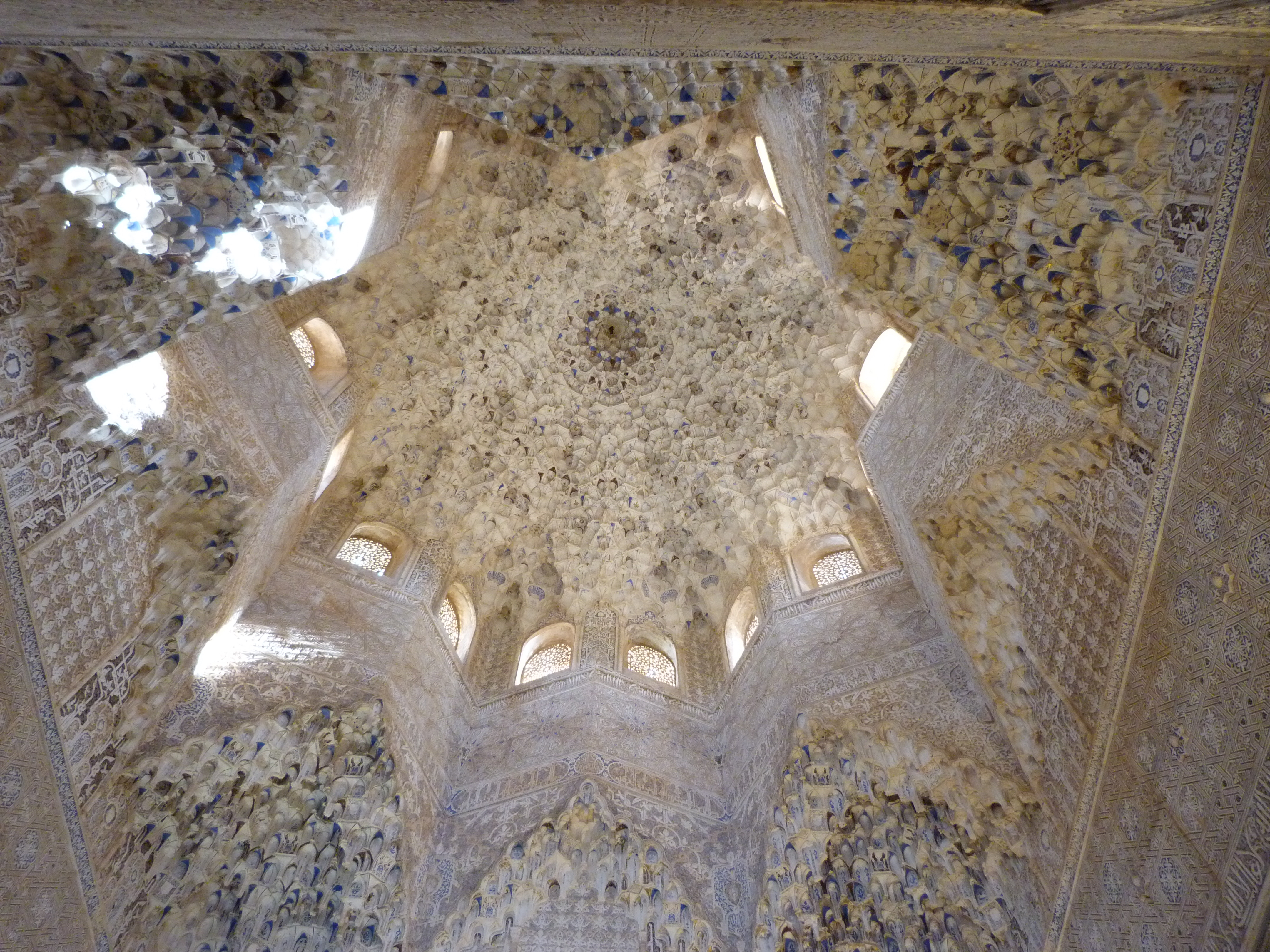 Relieves y ventanas con celosías en una bóveda de la Alhambra, Granada.