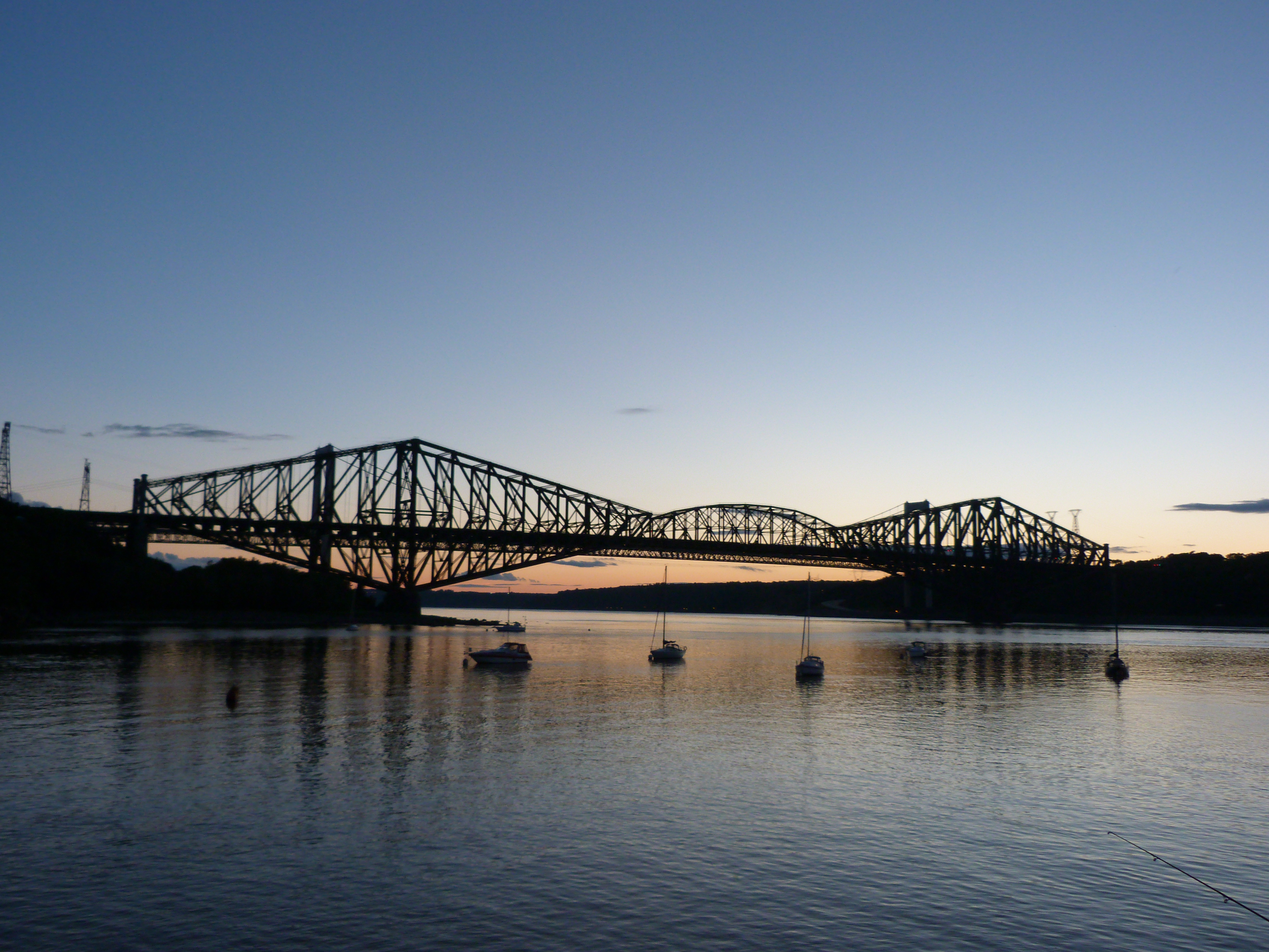 El puente de Quebec es un puente mixto de ferrocarril y carretera que cruza el río San Lorenzo al oeste de la ciudad de Quebec hasta Lévis en la costa sur. Es una estructura de acero remachada de 987 m de largo, 28,7 m de ancho y 104 m de alto. Es el puente de tipo ménsula más largo del mundo, con un vano de 549 m entre sus pilares principales y un tramo central de 576 m de largo. Cada tramo en voladizo es de 178 m. La altura libre debajo de su luz central es de 45,72 m con marea alta y 52,42 m con marea baja. Todavía se considera hoy como un trabajo de importante ingeniería. Está ubicado aguas abajo del puente Pierre Laporte.