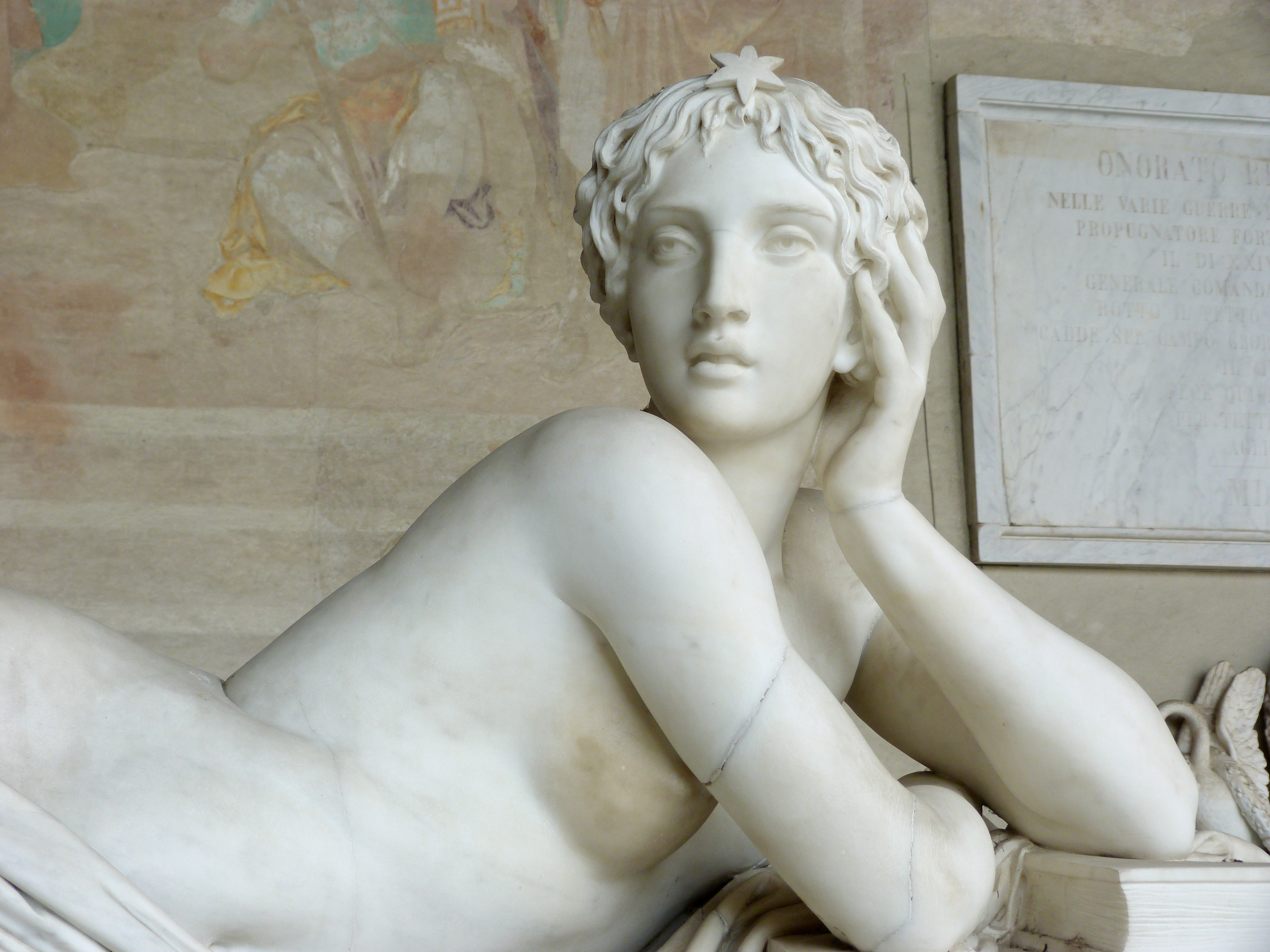 Escultura yacente de mujer, de Canova, en el camposanto de Pisa