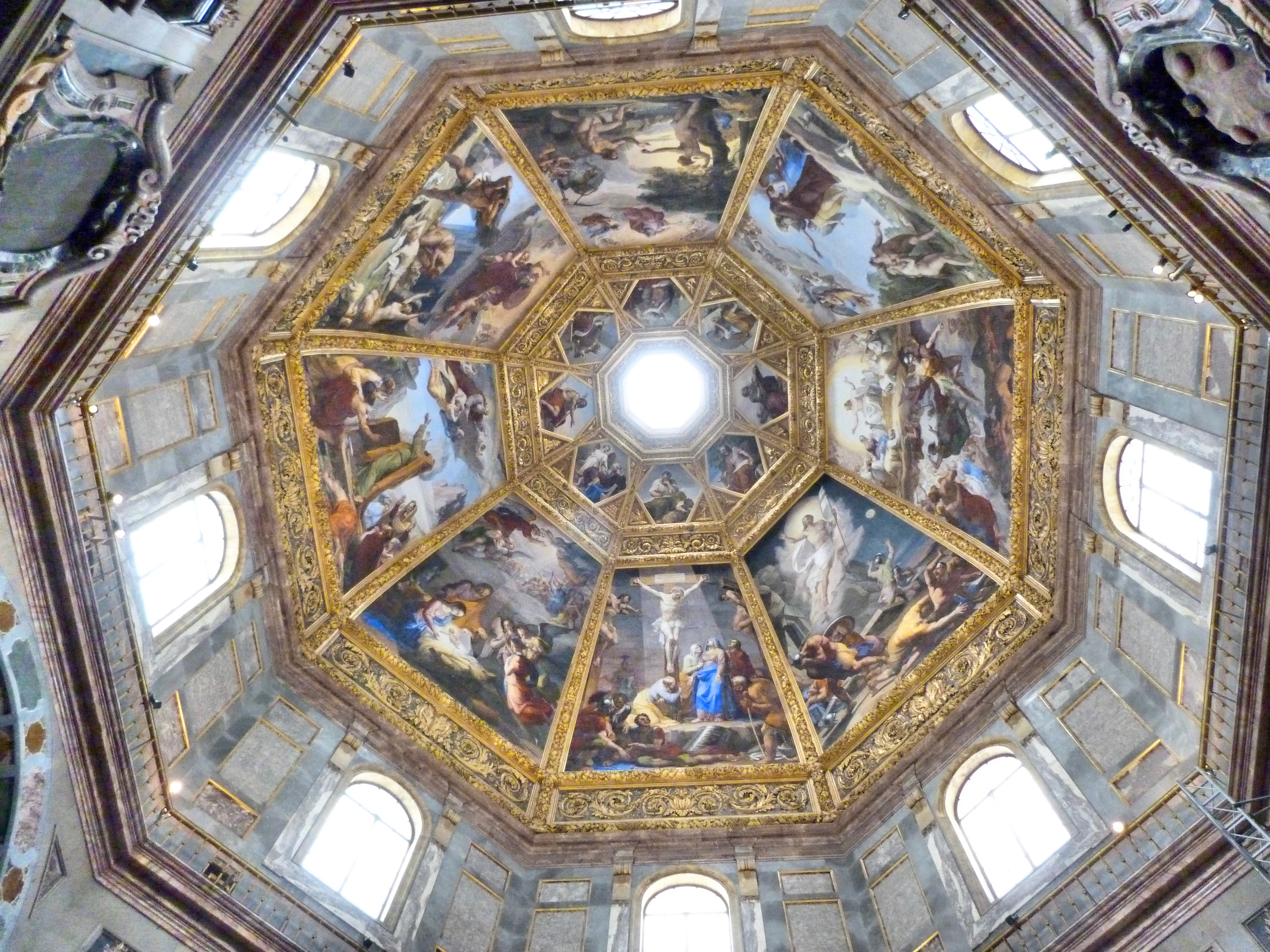 Bóveda pintada de la capilla Medici de forma octogonal y coronada por una alta cúpula de 59 m de altura.