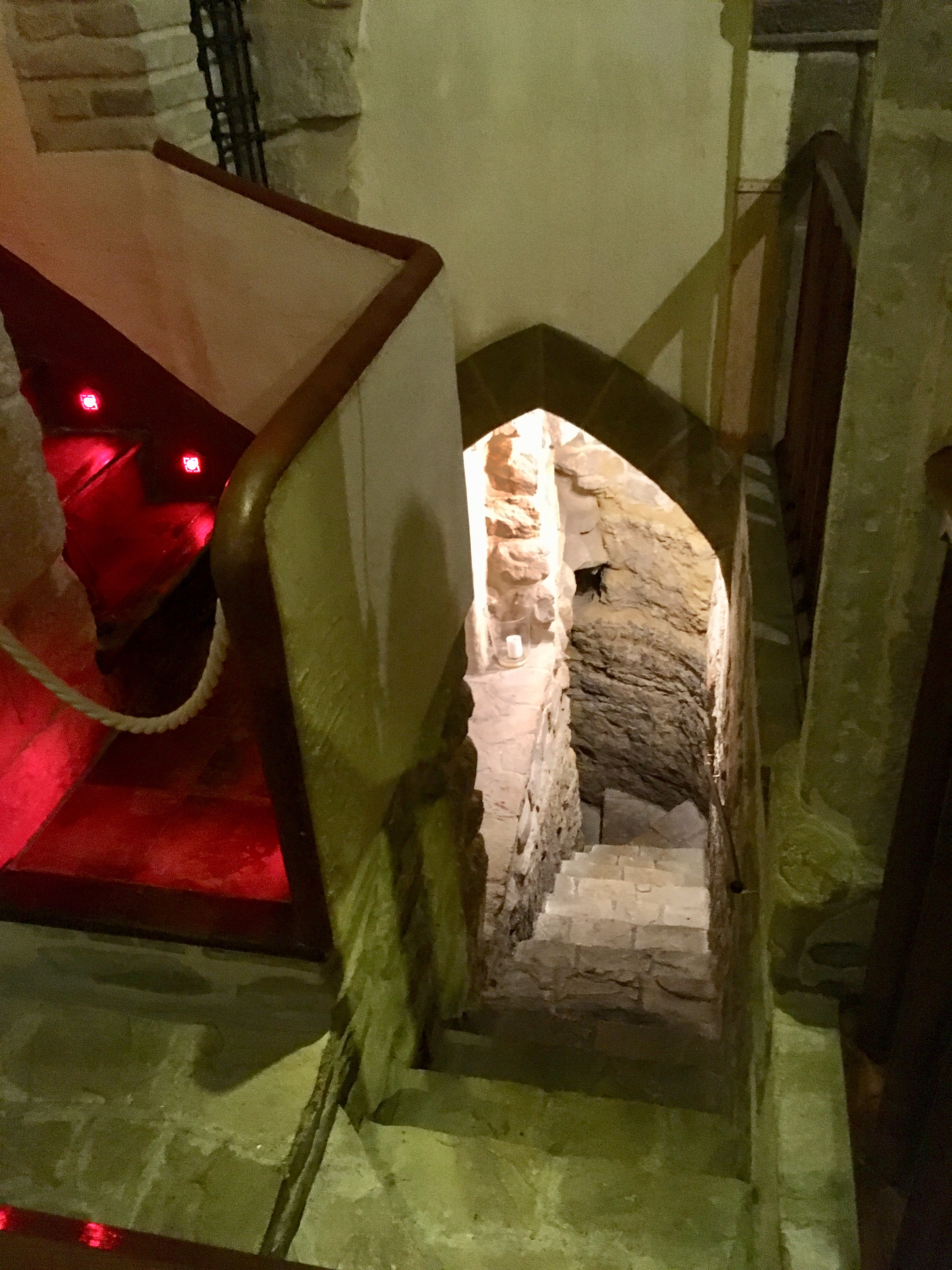 Escalera para acceder a la planta baja de la sinagoga del agua en Úbeda.