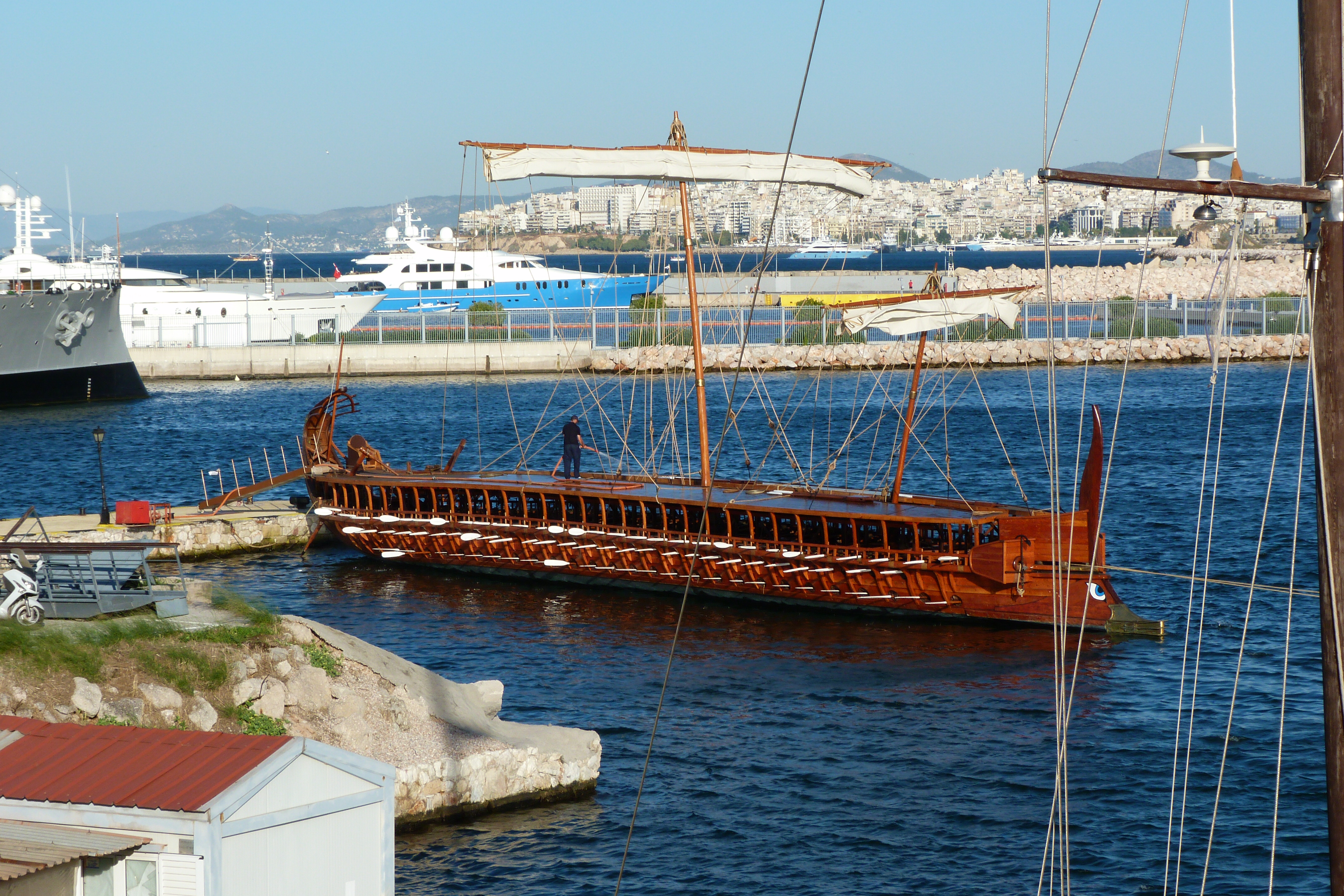 El trirreme era una nave de guerra inventada hacia el siglo vii a. C. Desarrollado a partir del pentecóntero, era más corto que su predecesor, un barco con una vela, que contaba con tres bancos de remeros superpuestos a distinto nivel en cada flanco, de ahí su nombre.