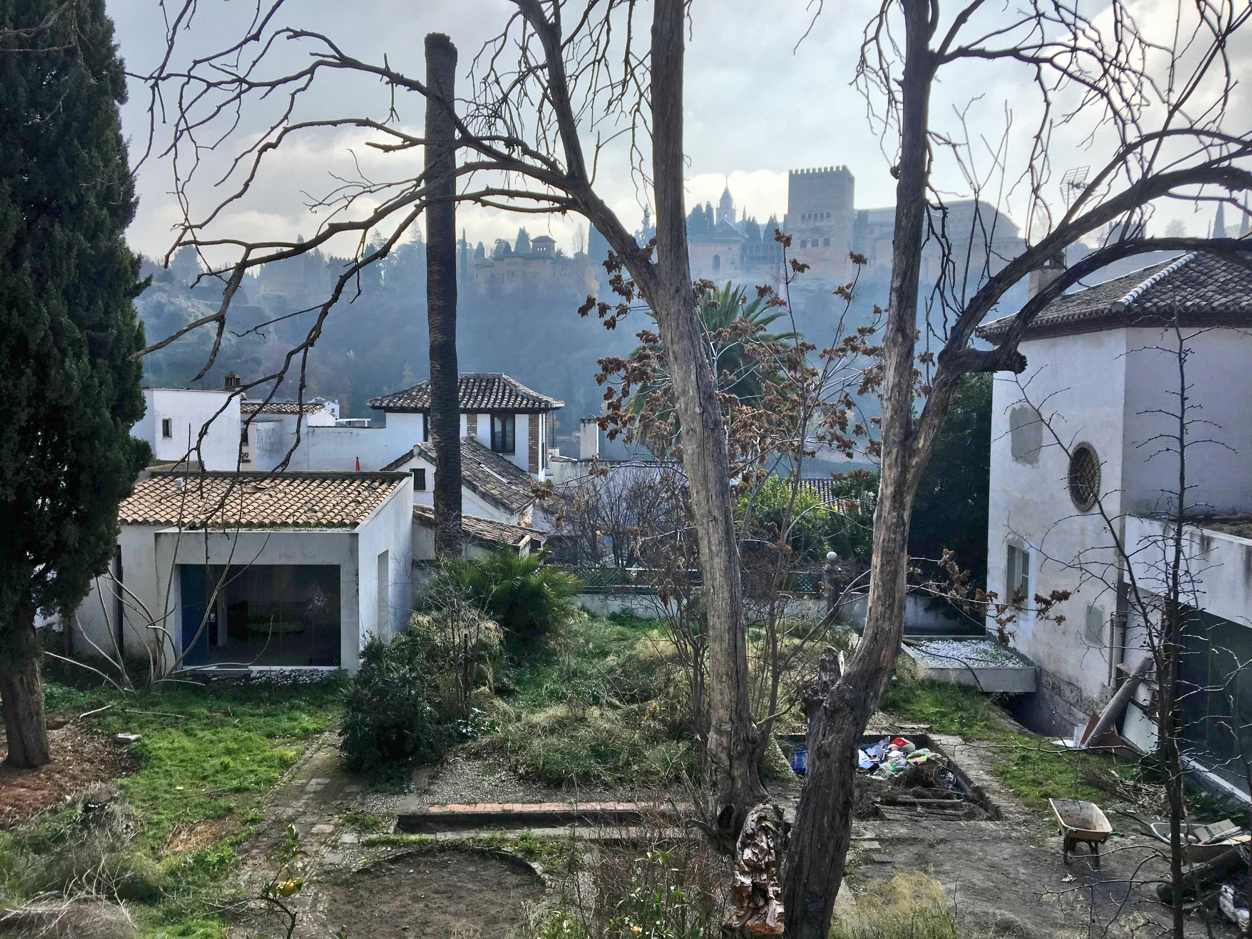 Vista de la Alhambra desde el Albaicín en un día nublado.