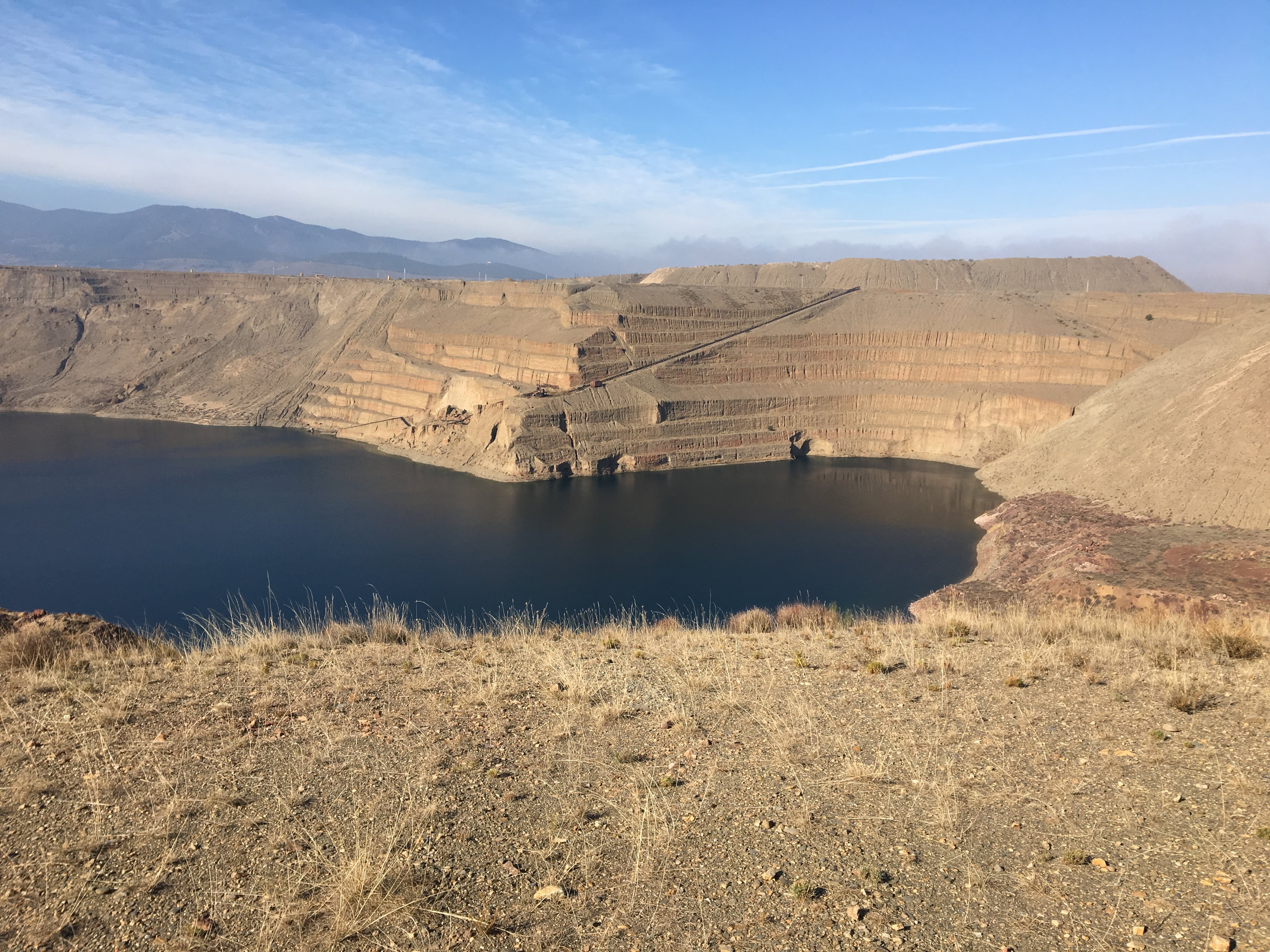 Aspecto de las minas de hierro de Alquife, en parte colmatadas por el agua y detrás, sierra nevada.