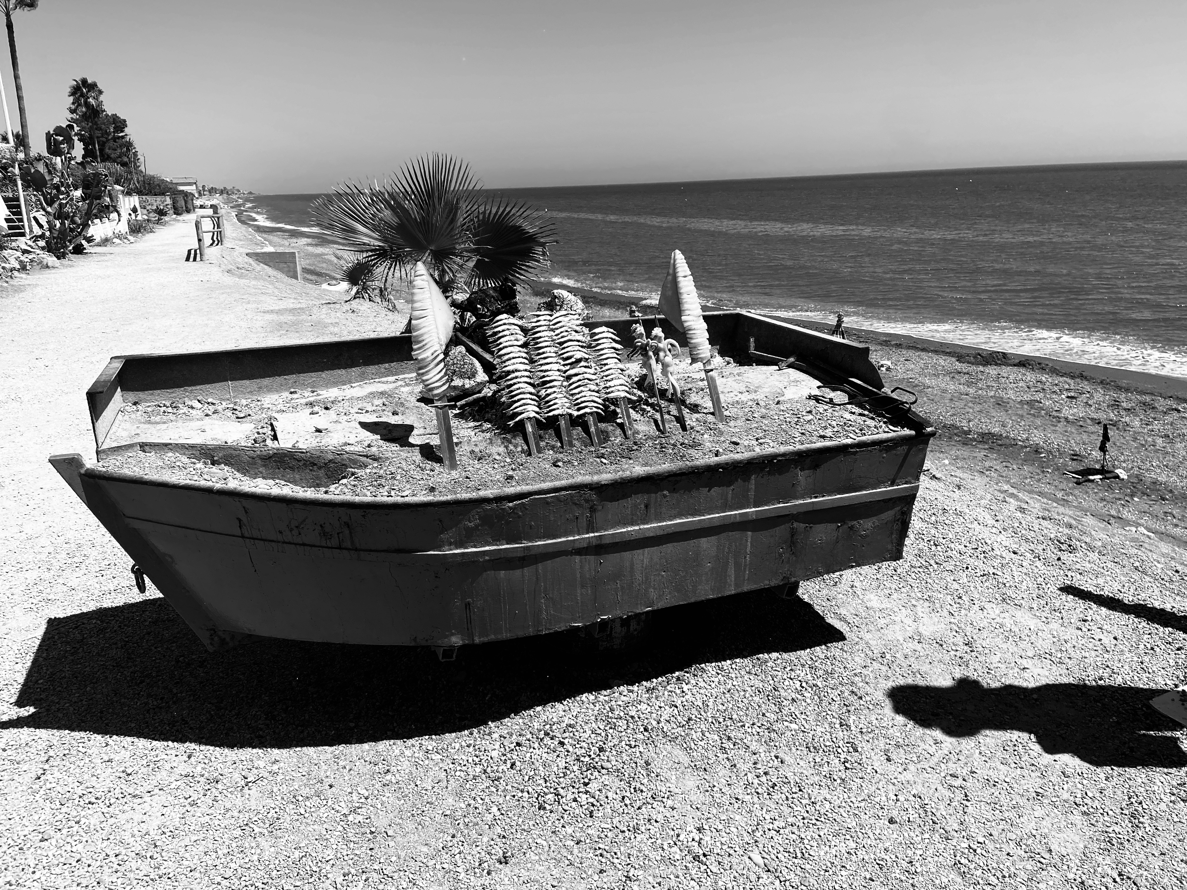 Barca de espetos en la playa de los rubios, Málaga